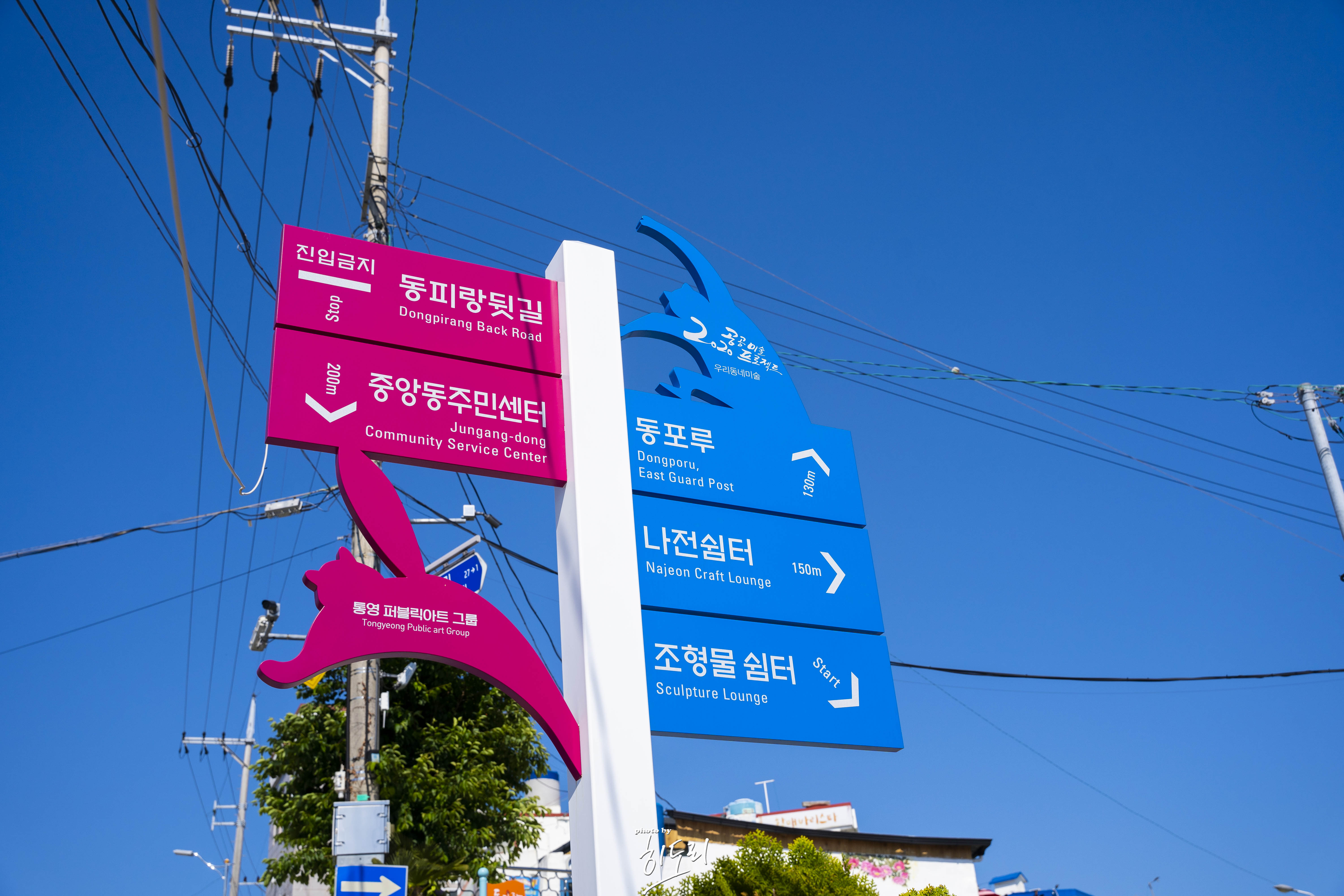 여기서 부터 동피랑까지 한바퀴 돌수 있는 코스인데 천천히 걸어가보시면 30분정도 걸립니다.