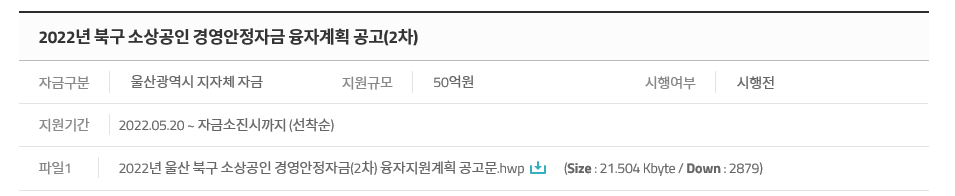 울산광역시 지자체 자금 2022년 북구 소상공인 경영안정 자금 융자 2차 공고가 나왔습니다.