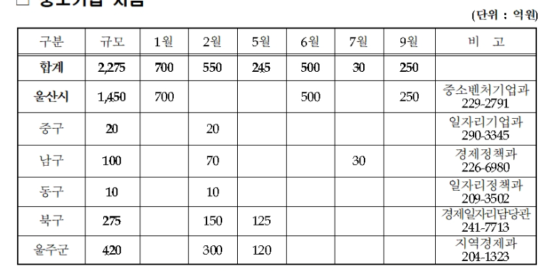 5월에는 북구와 울주군이 2차 융자가 나오고 7월에는 남구가가 예정중입니다.