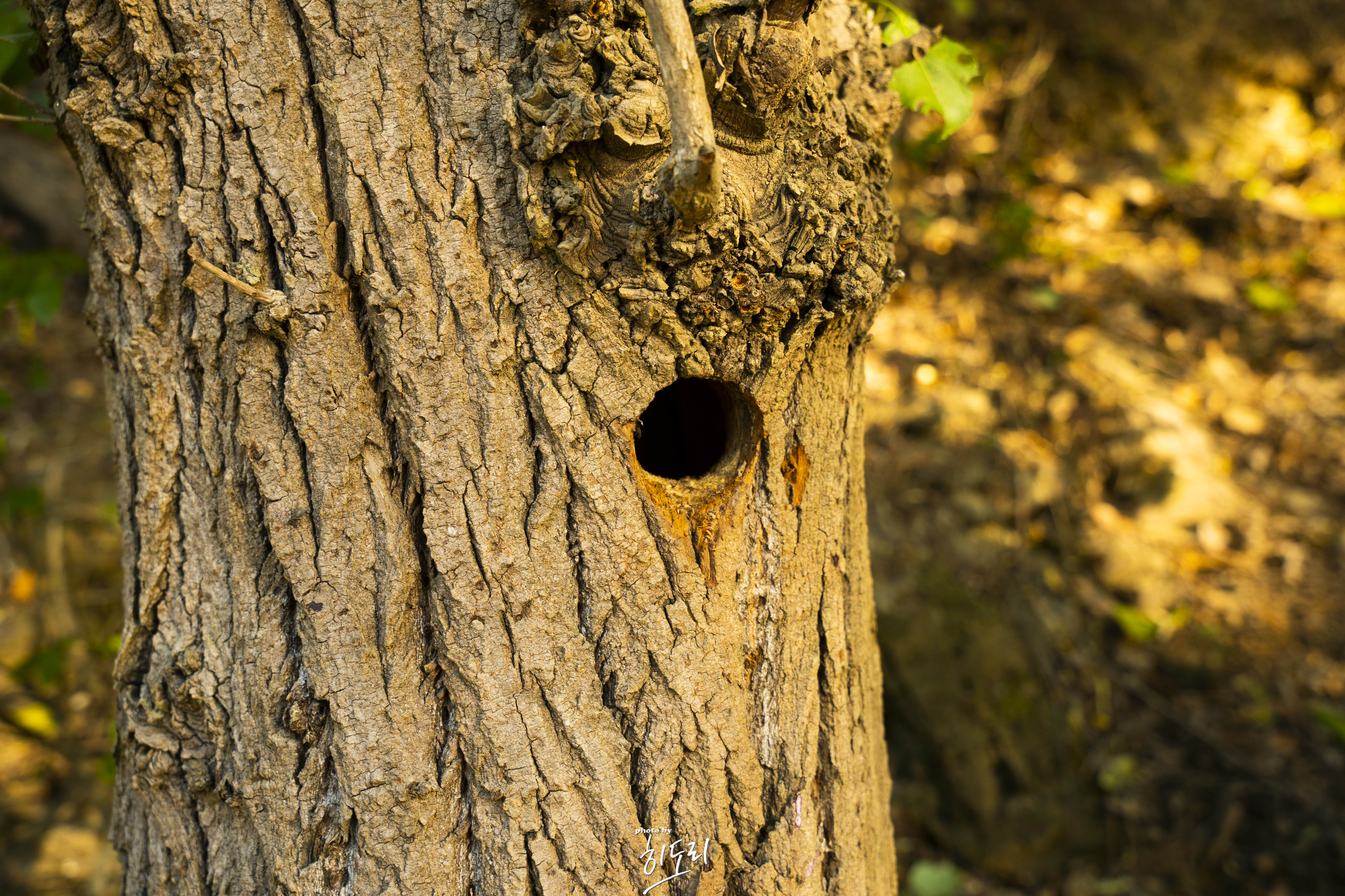 소리를 찾아 보니 요렇게 나무에 구멍을 내어서 아기새들이 어미새를 찾아 열심히 울고 있는 소리였습니다.