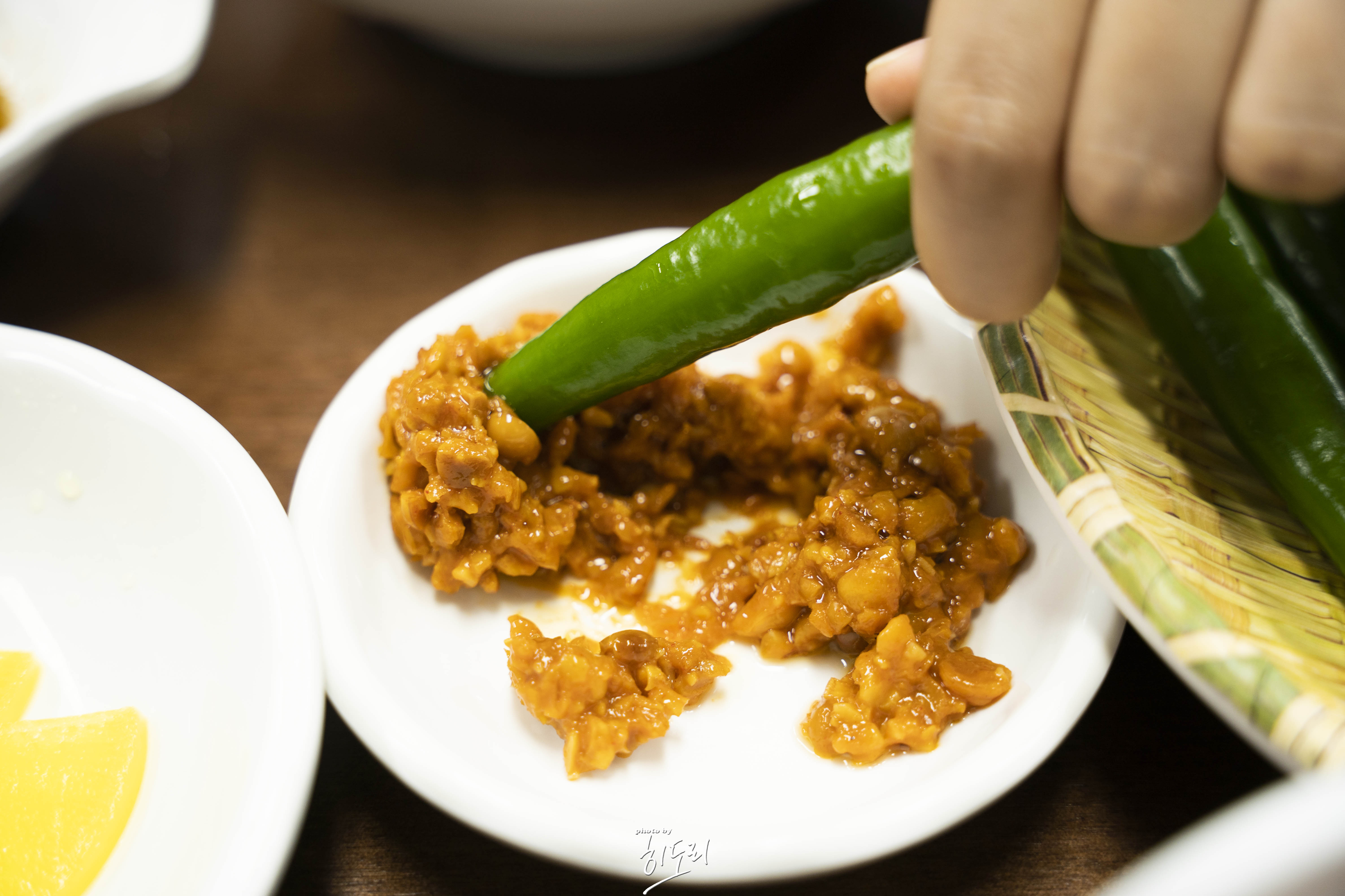 대중분식당에는 된장이 너무 맛있어서 풋고추를 그냥 된장에 푹푹 찍어서 막 먹었어요.