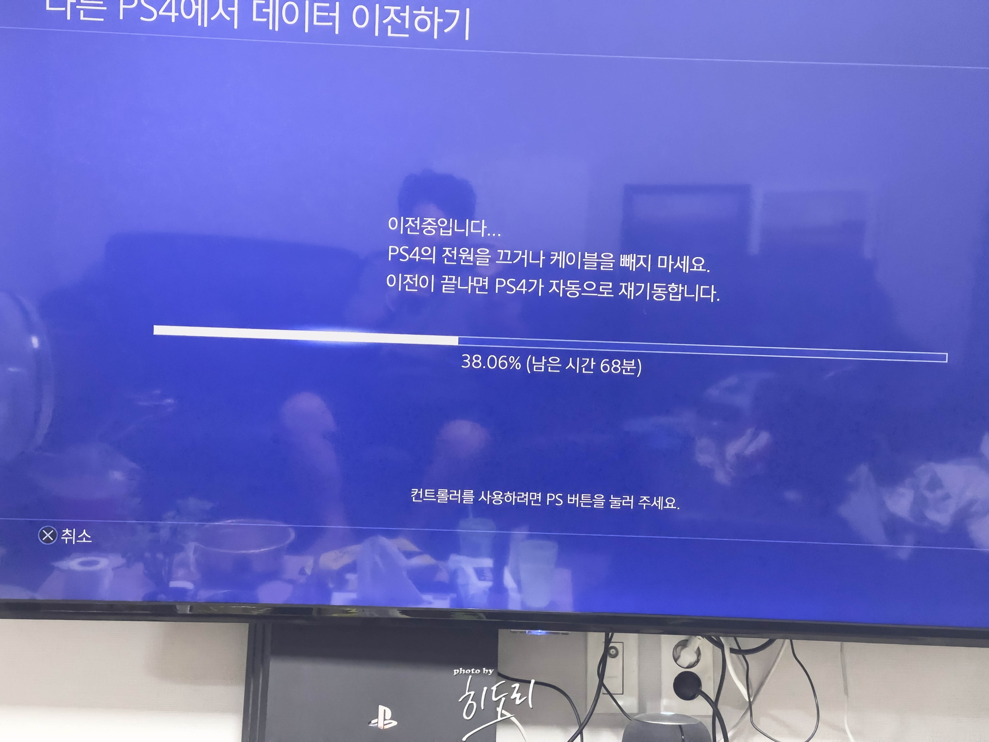 TV바로 아래 수납함에 보관이 어려울 정도로 커져버린 플스5...