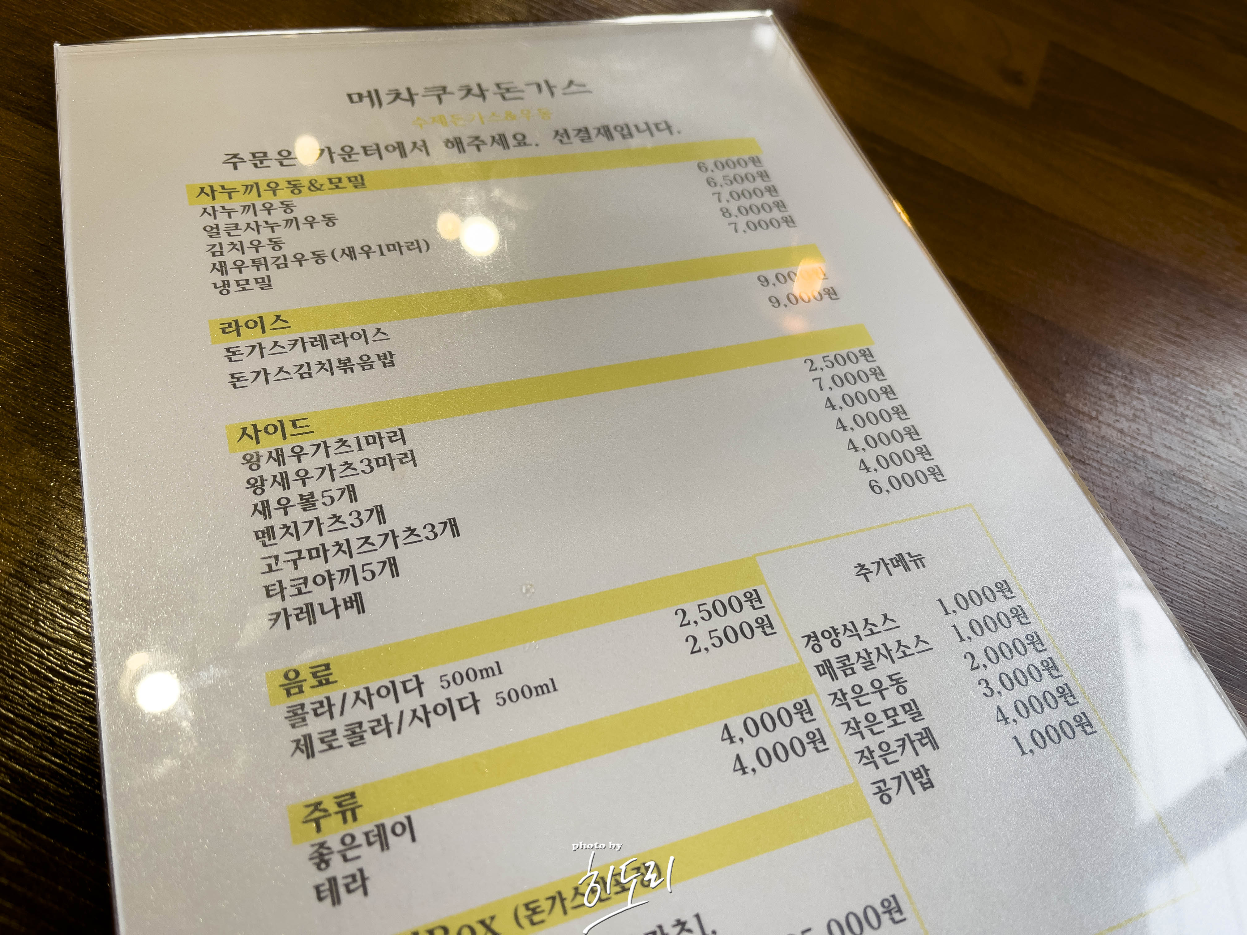 아! 메차쿠차는 주문을 직접 카운터로 가서 주문 후 선결제 시스템이랍니다.