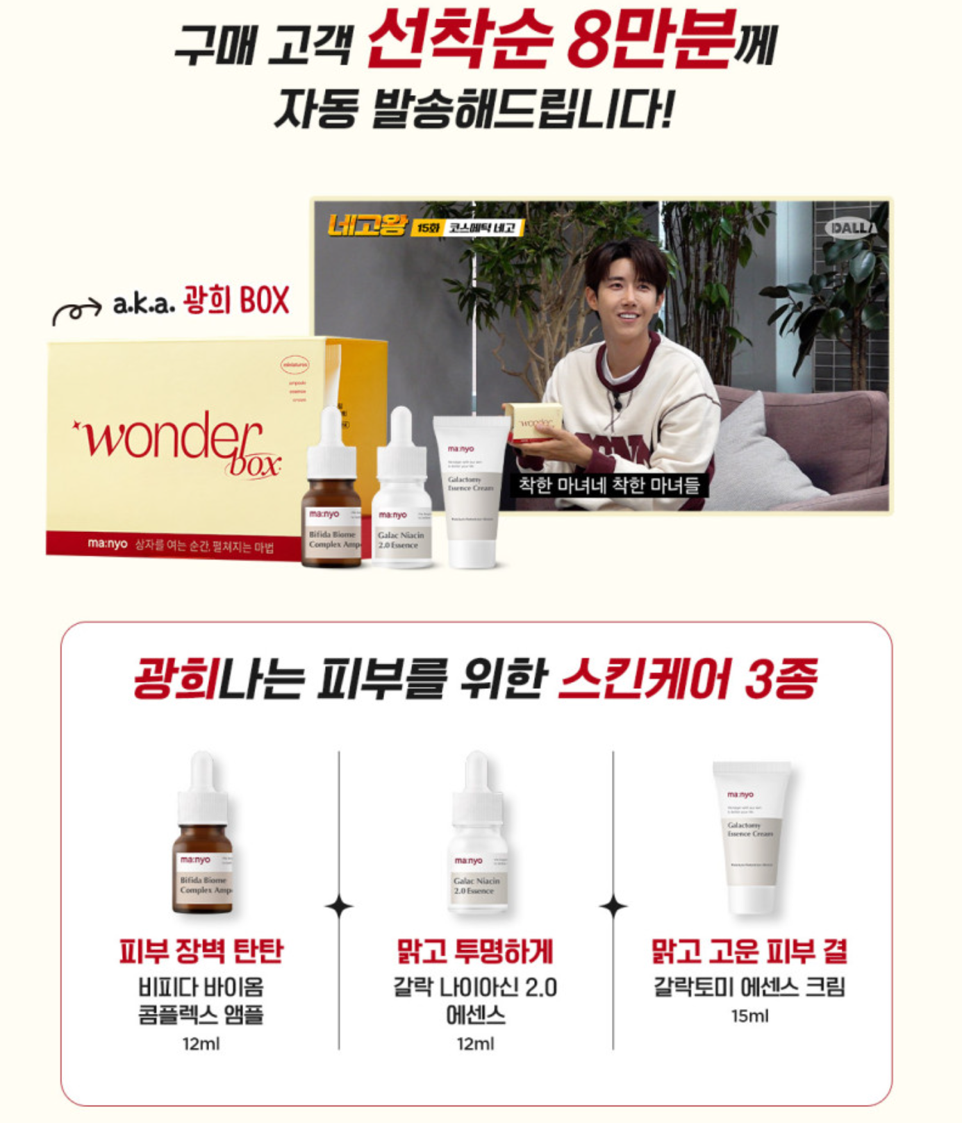 광희박스에는 비피다 바이옴 콜플렉스 앰플과 갈락 나이아신 2.0 에센스 그리고 갈락토미 에센스 크림이 들어있는데요.