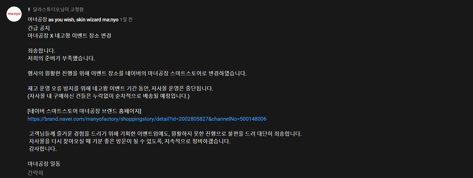 이렇게까지 사람들이 많이 들어올줄 몰랐는지 마녀공장 홈페이지와 앱은 서버가 터져서 현재 네이버스토어로만 판매를 하고 있습니다.