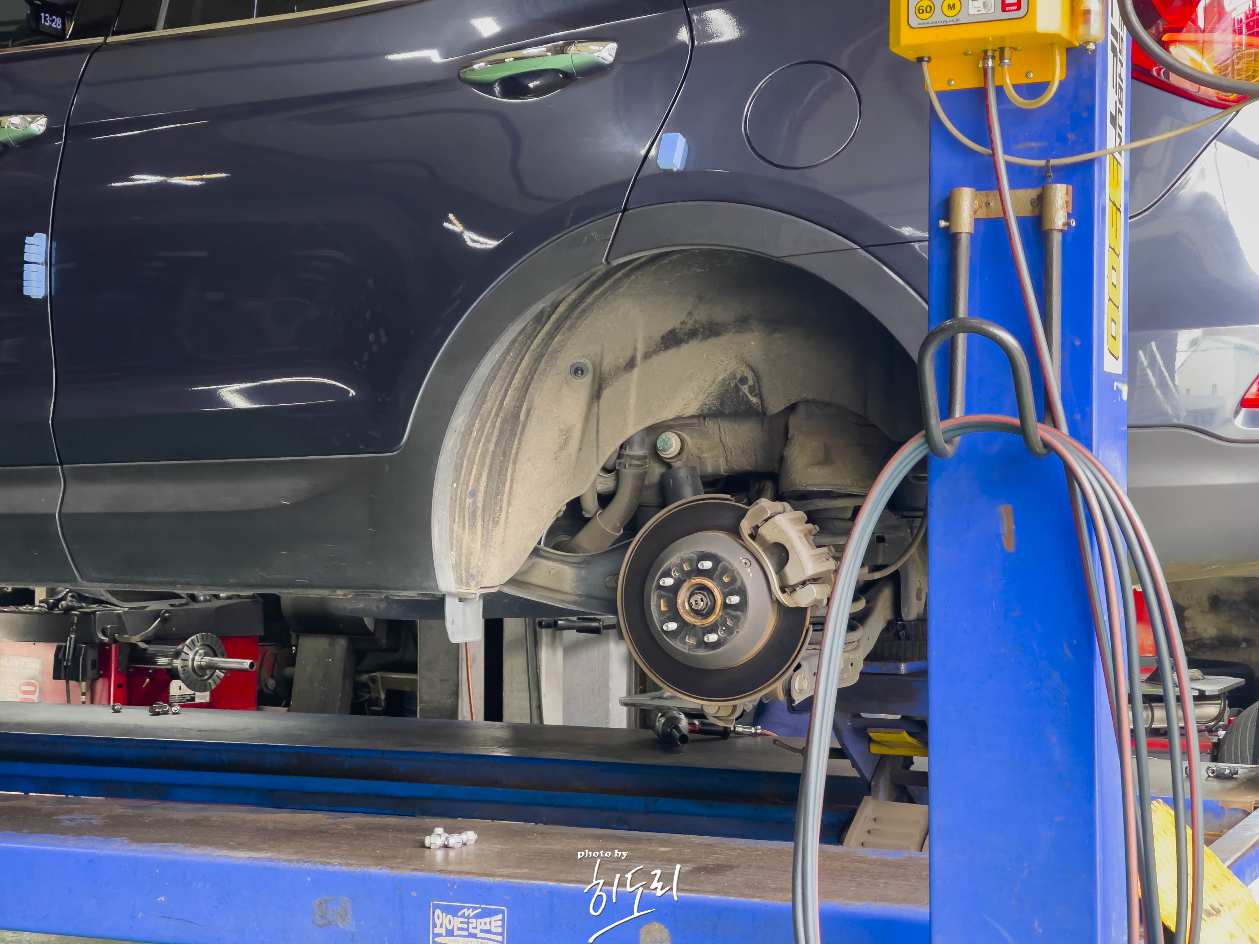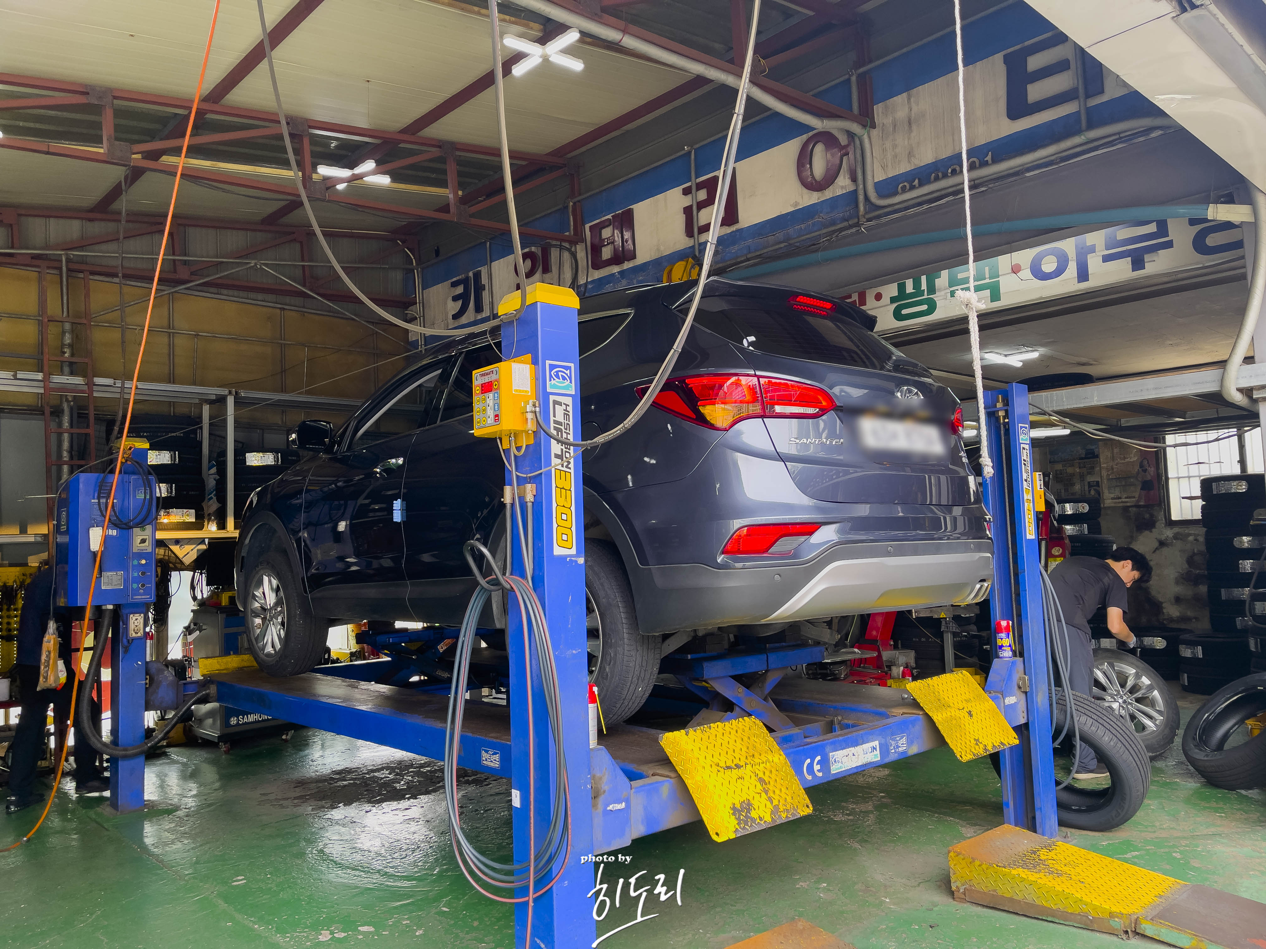 앞쪽만 마모도가 심해서 앞쪽만 교체를 할려고 했는데 싼타페DM은 상시 4륜이라서 앞 뒤 4개 전부 교체하기로 했습니다.