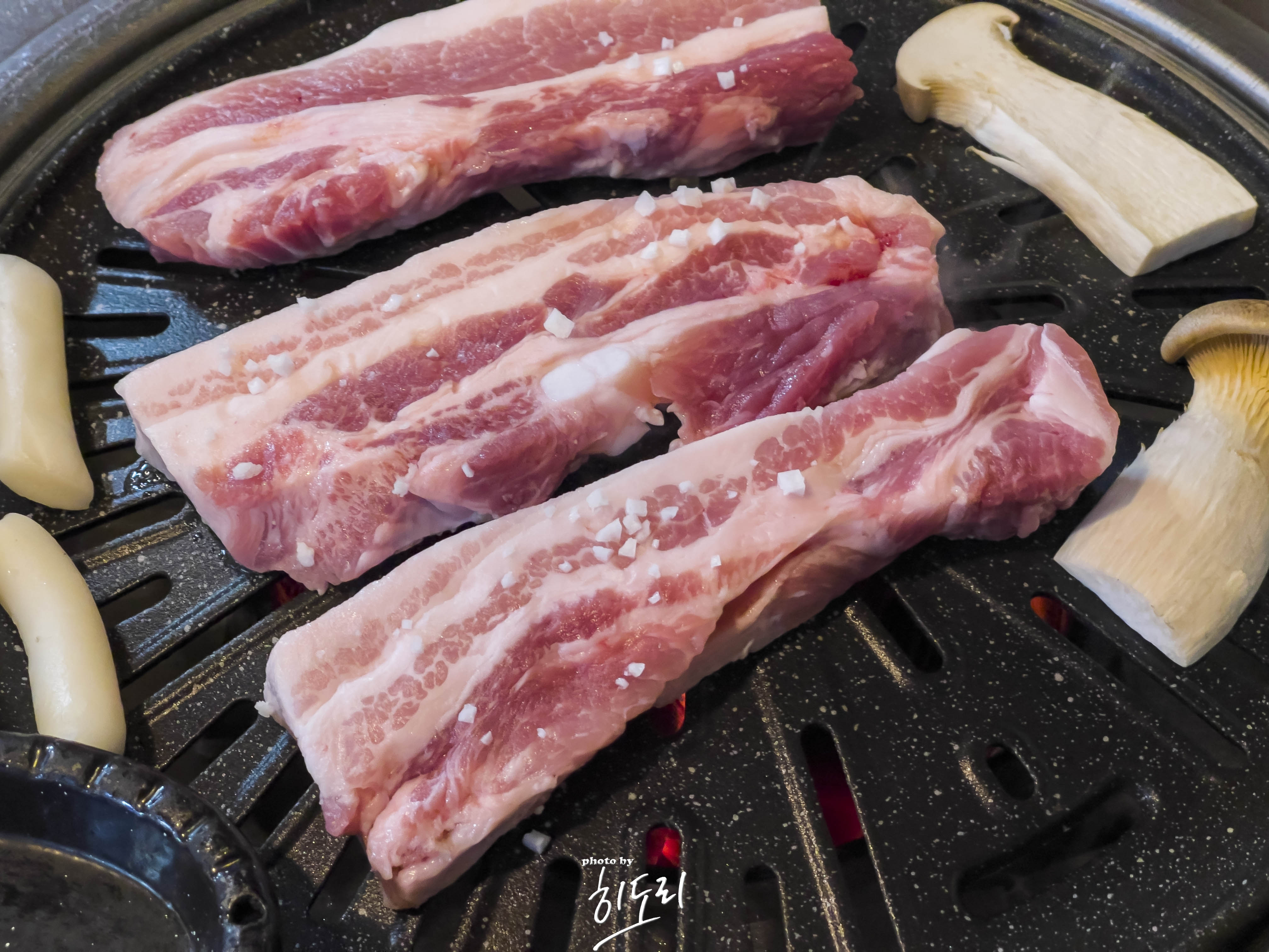 고기도 두툼한 삼겹살인데... 맛이 없을수가 없어요.