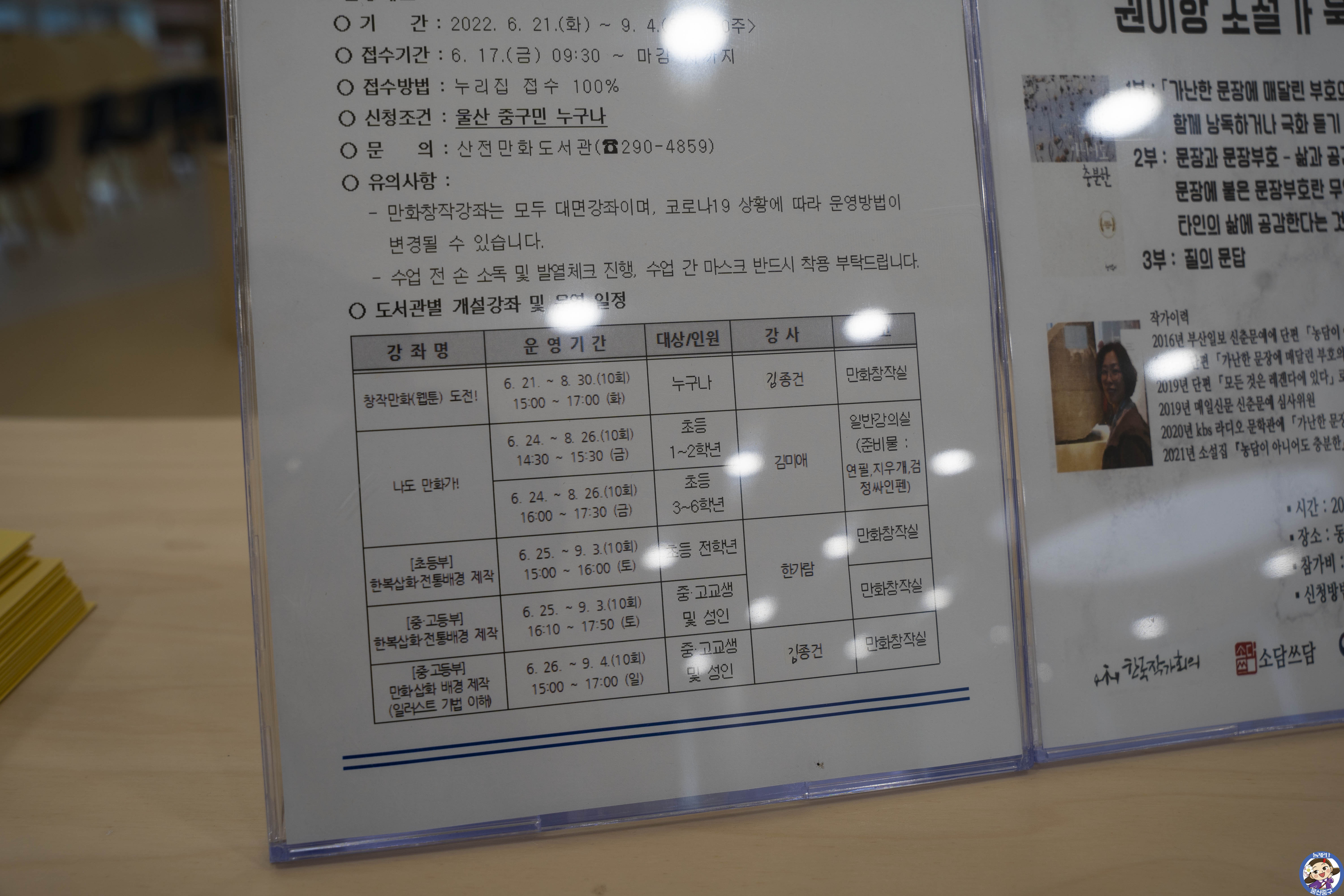 먼저 산전만화도서관에는 울산 중구민이라면 누구나가 만화창작강좌도 신청하실수가 있습니다.