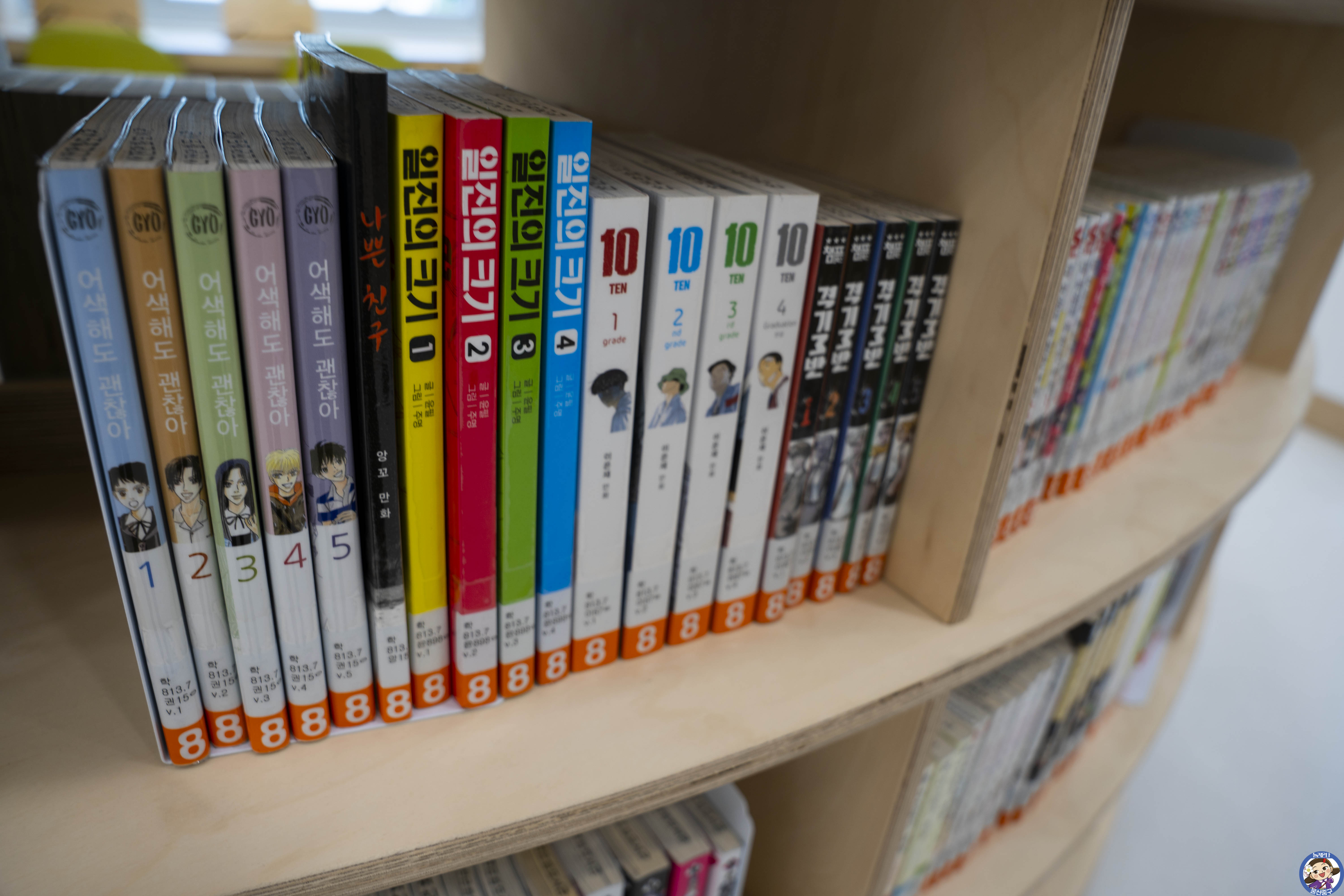 아이들이 읽을수 있는 만화부터 어른들도 재밌는 만화책까지 다양한 장르의 책들이 있는 산전만화도서관!