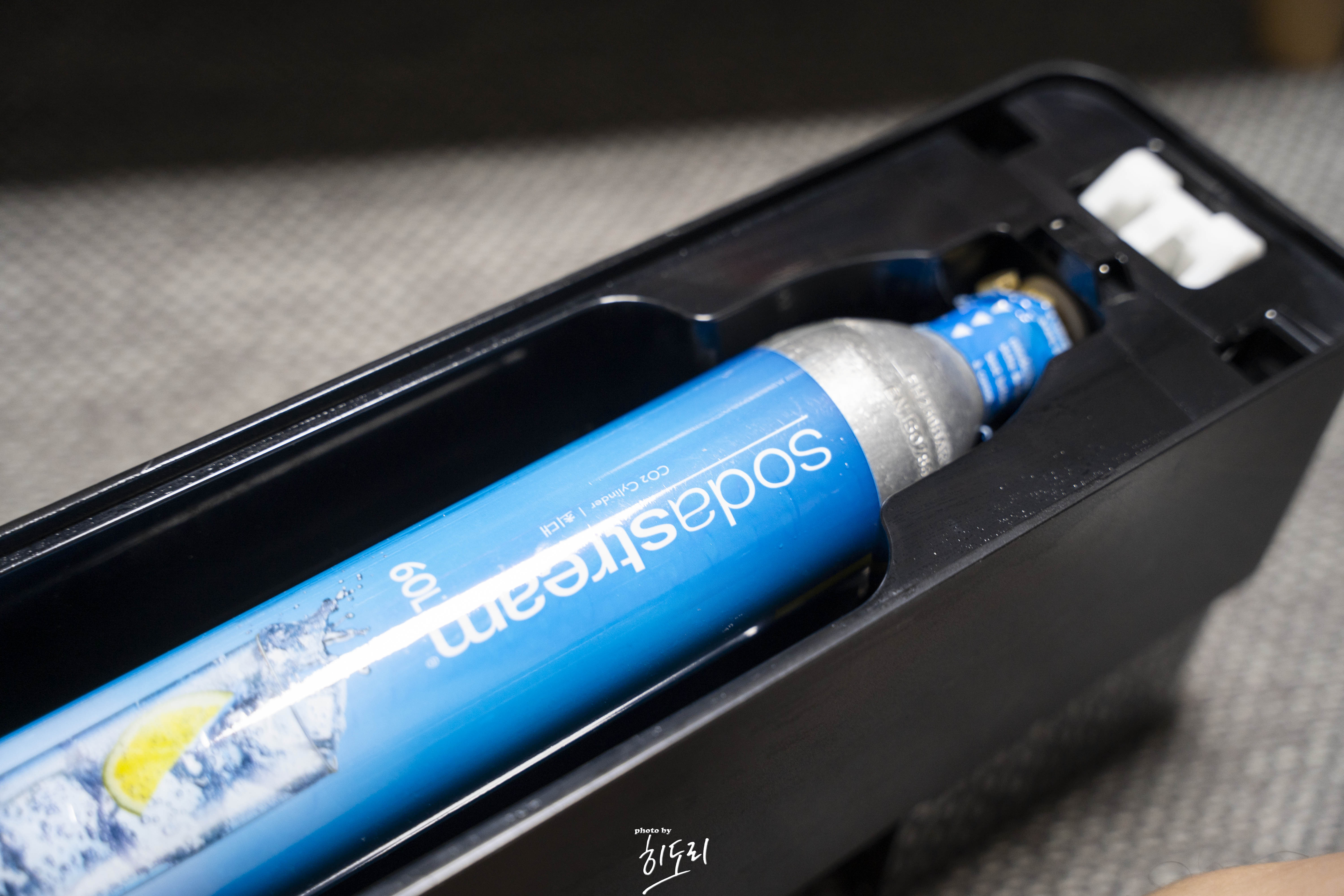소다스트림 전용 공병을 이용해 기계에 결합 후 탄산수로 만들수가 있습니다.