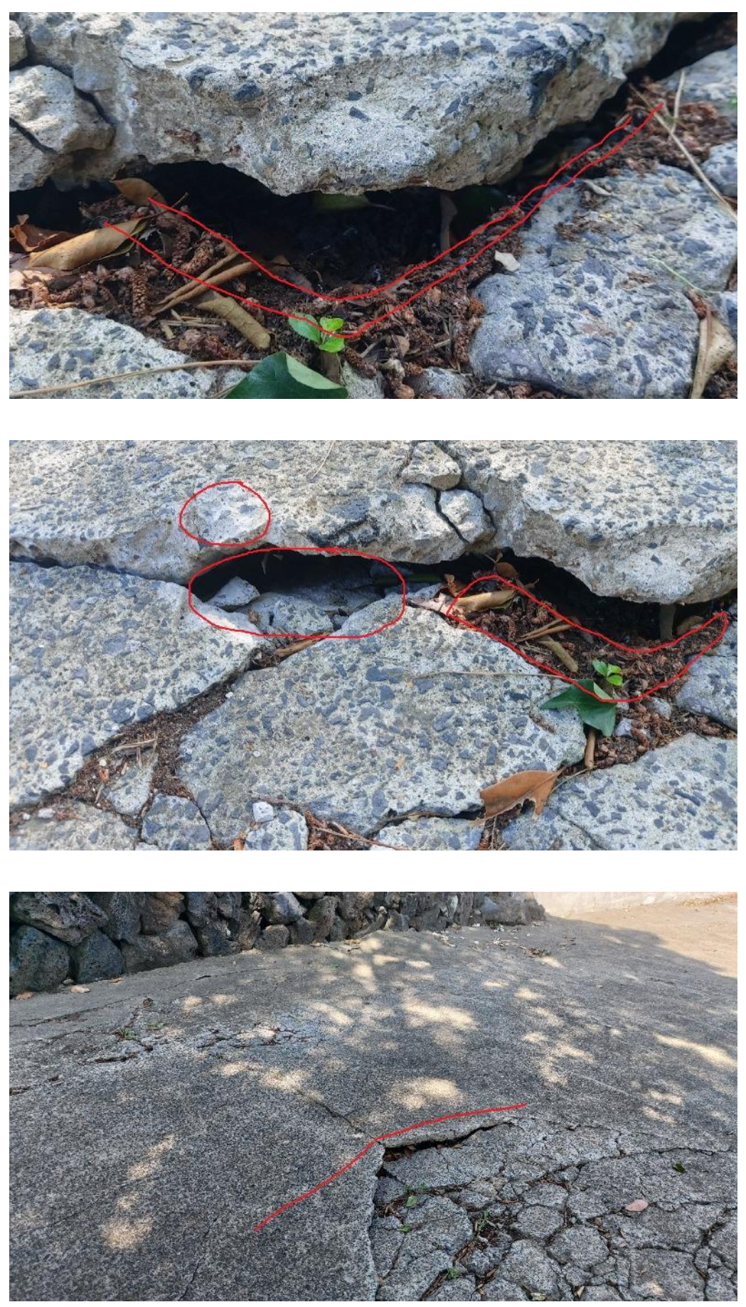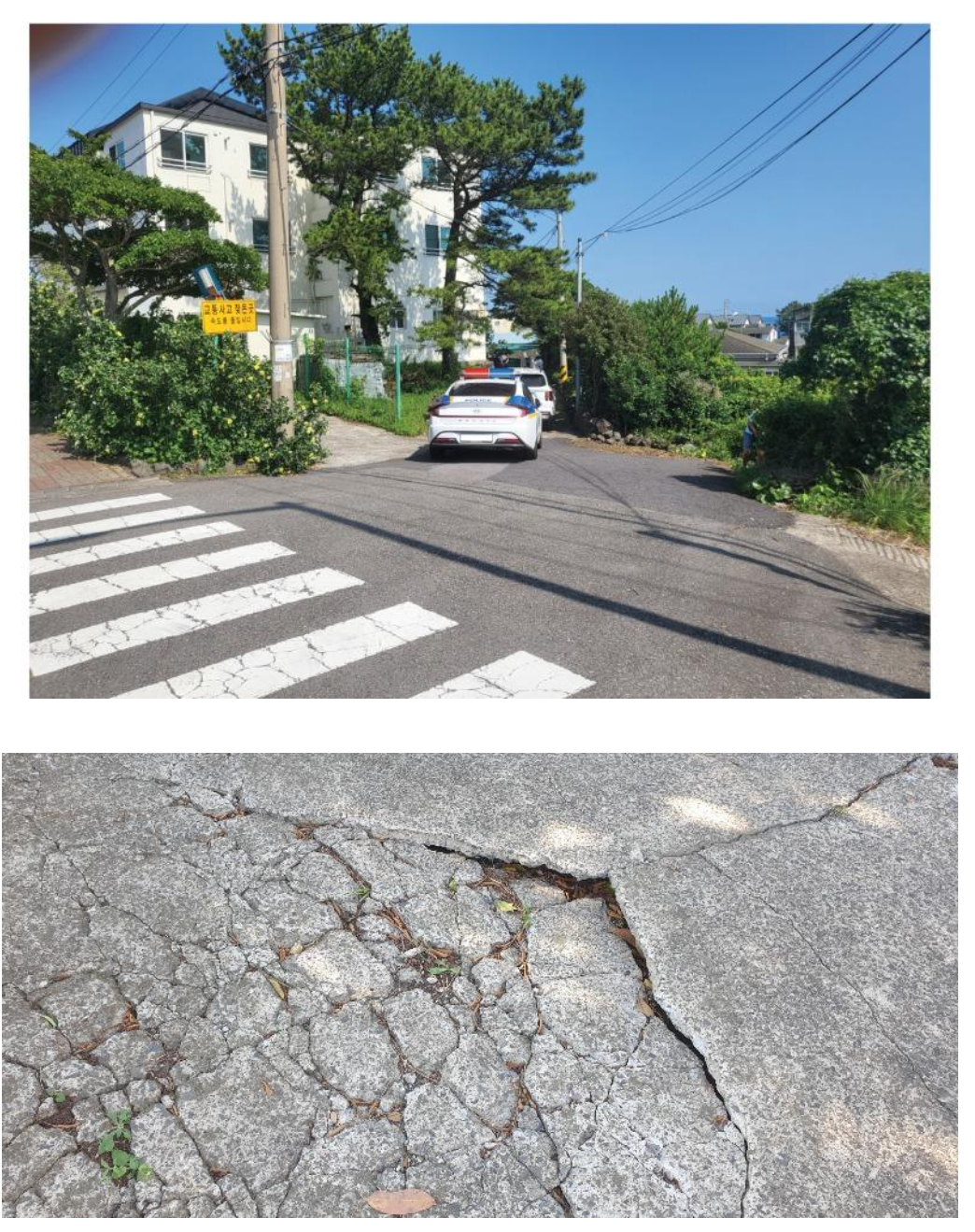 5. 파진 땅 부분으로 빗물이 들어가서 혹시나 밑에 쪽 도로가 뜨는 현상이 일어날 까봐 보험사 직원분에게도 지금 융기된 부분에 대해서만 원상 복구 바란다라고 말했음
