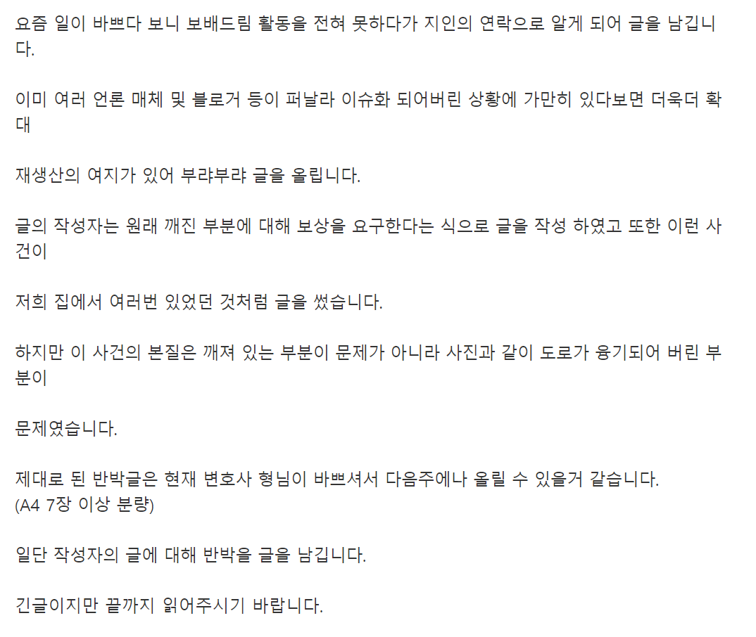 3. 10여년전에 콘크리트 도로 만들고 이번사건을 제외하고 단 한번도 합의금이니 피해 보상금 받은적도 없음.