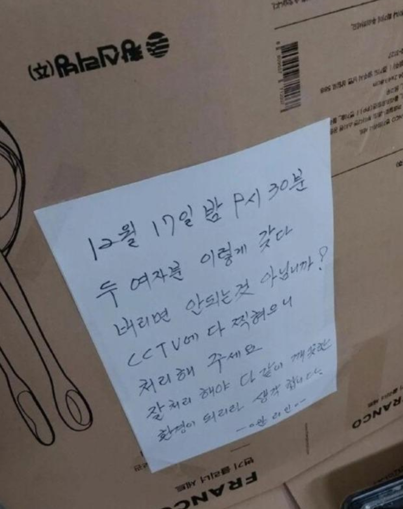 차라리 쓰레기봉투에라도 넣어서 버리던가....
