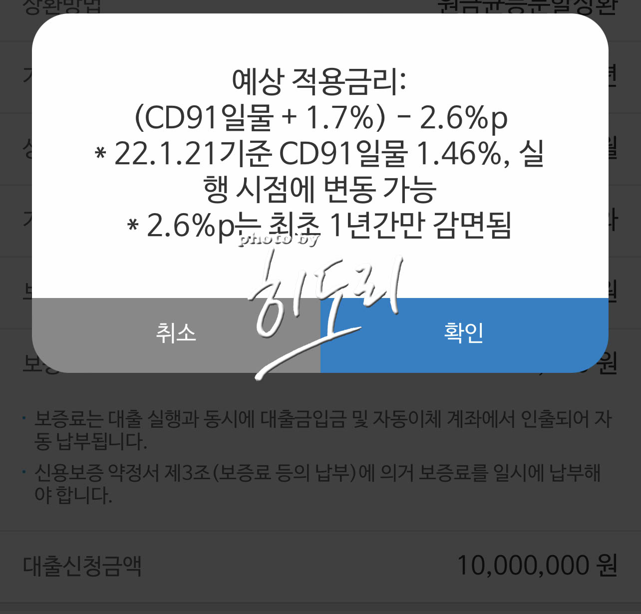 고금리 시대에 1년간 저금리로 이용할수 있기에 여유돈으로 대출 실행을 해보았습니다.