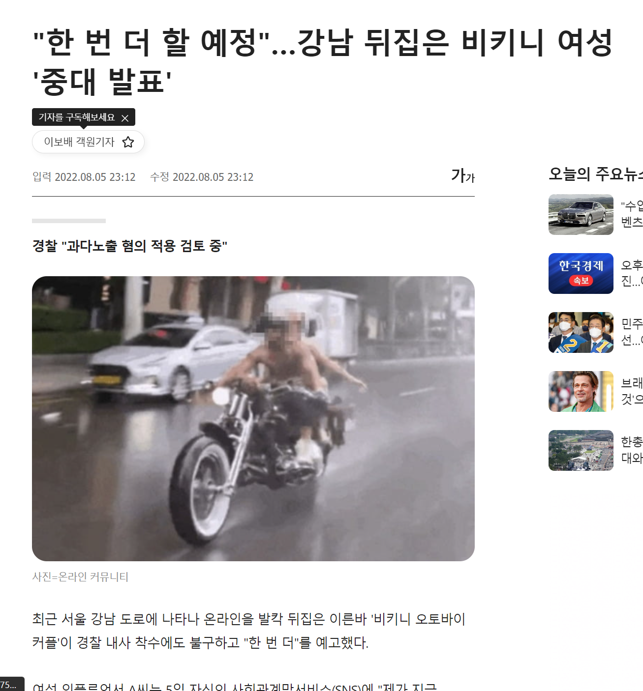 강남 비키니 라이더는 한번 더 비키니 차림으로 오토바이를 타고 영상을 찍는다고 발표를 했었는데요.