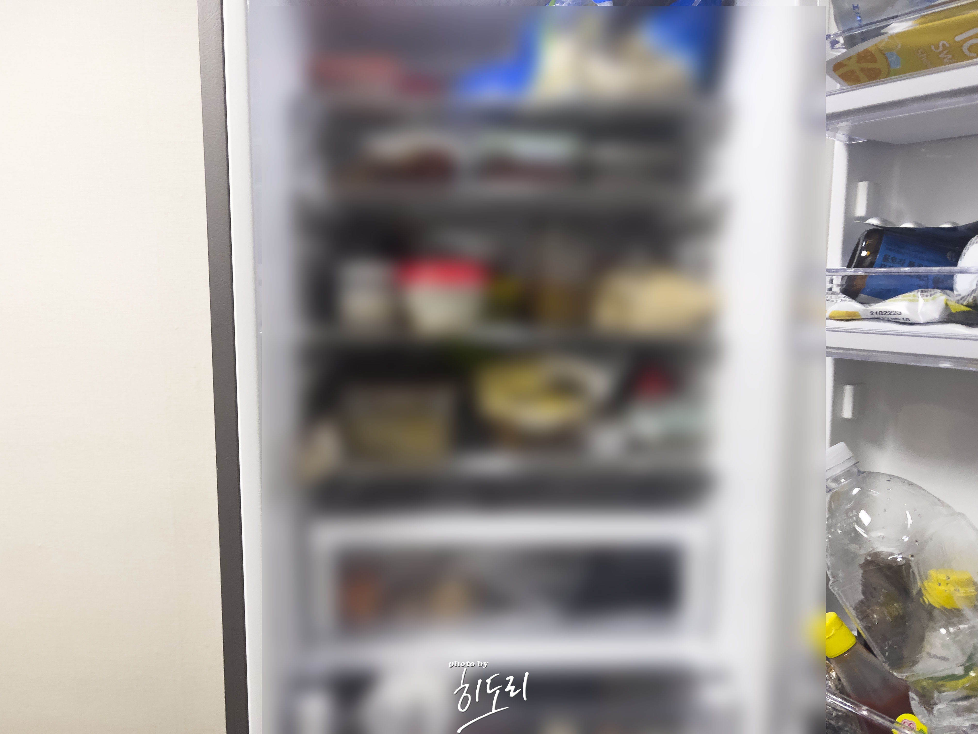 휴... 마스크 쓰고 일단 냉장실에 있는 음식을 다 치우고 뒷편 판넬을 뜯어봅니다.