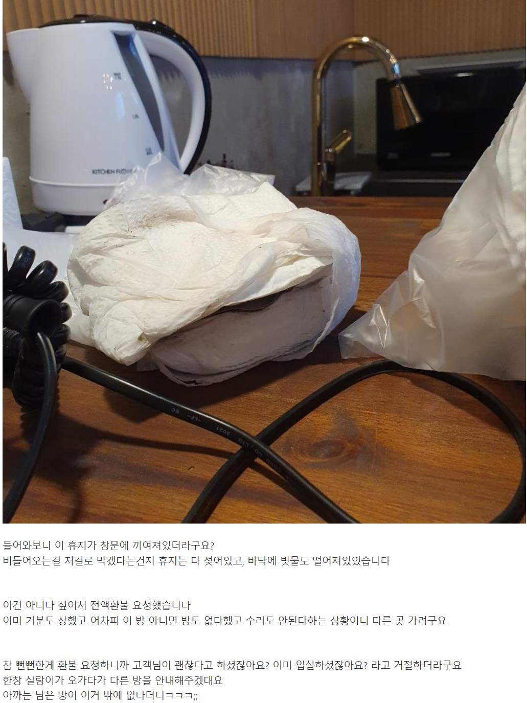 결국 환불 요청을 하니 다른방으로 안내한 펜션