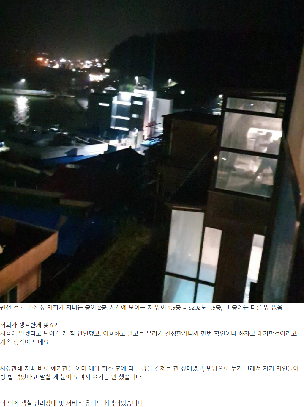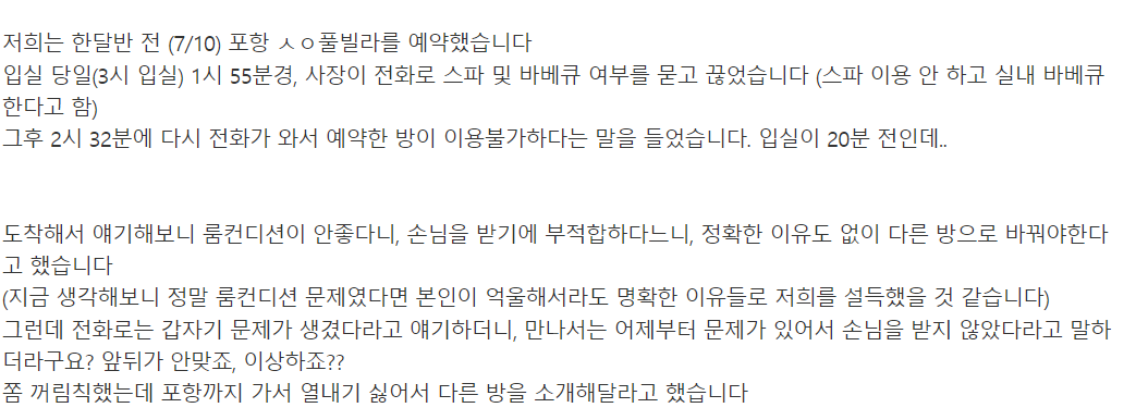 똑같은 조건의 방을 원했지만 방이 없다는 펜션측