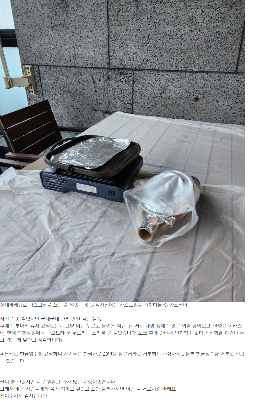 결국 바베큐 무료와 퇴실시간 연장으로 합의