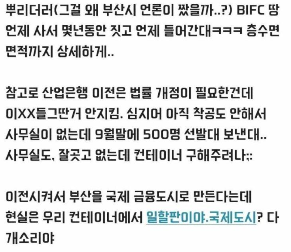 7. 아무 시설이 없는 부산 bifc 땅... 건물도 없지만 9월부터 500명 선발대 보낼 예정