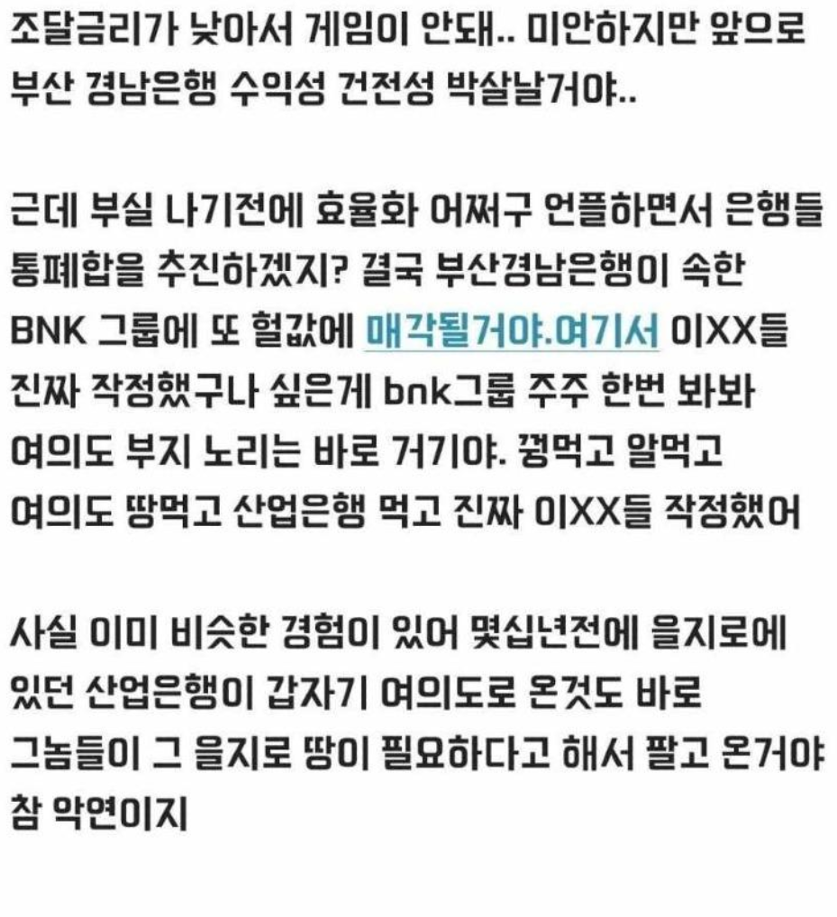 5. 부산,경남기업인 bnk는 결국 힘들어질것이고 헐값에 매각이 될것