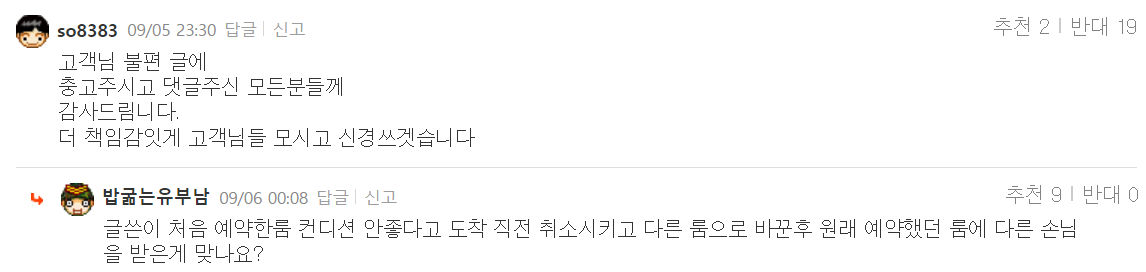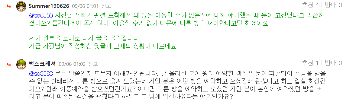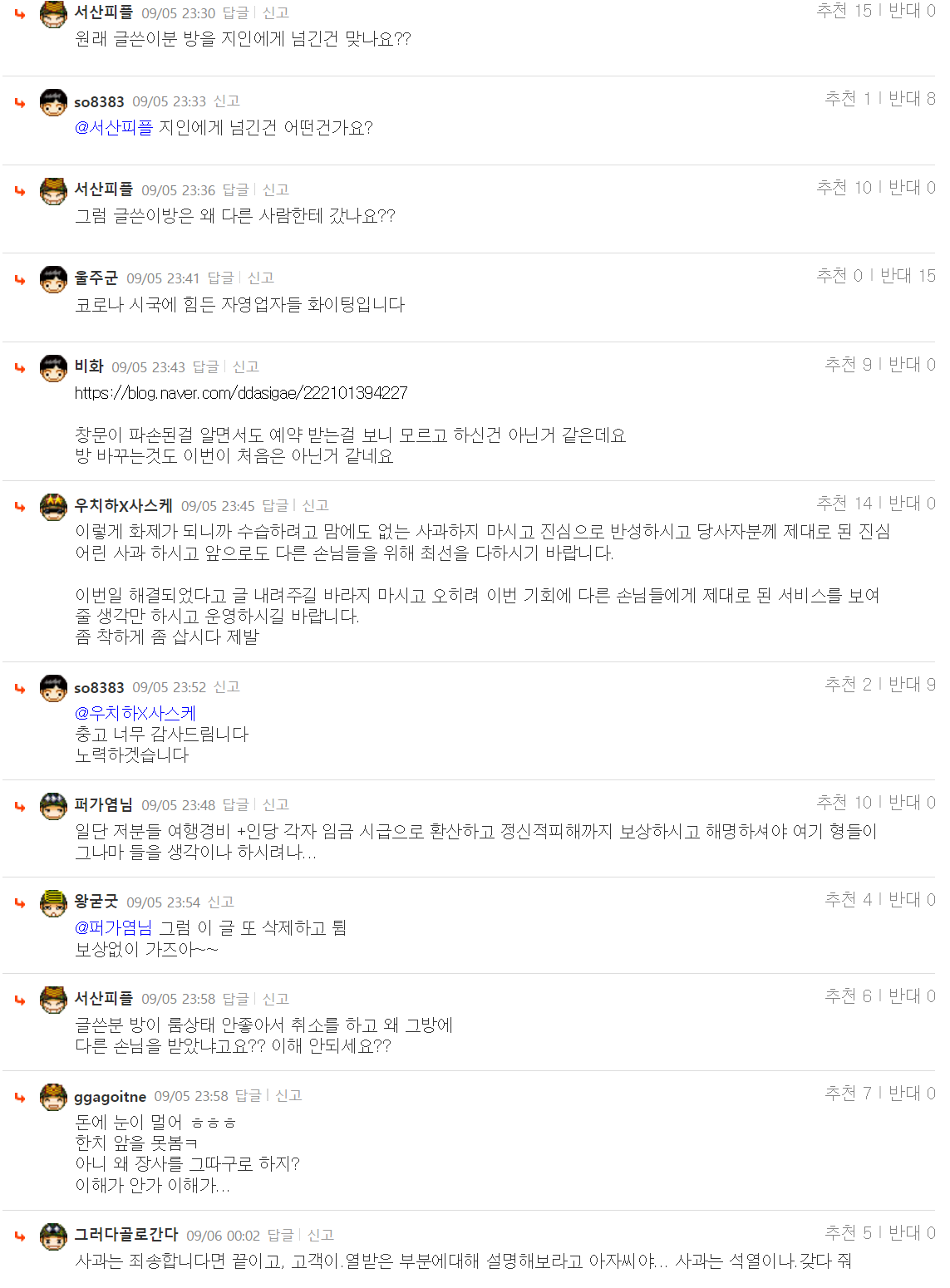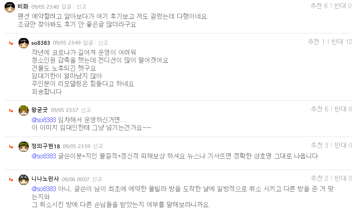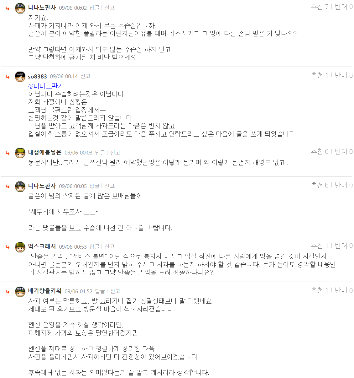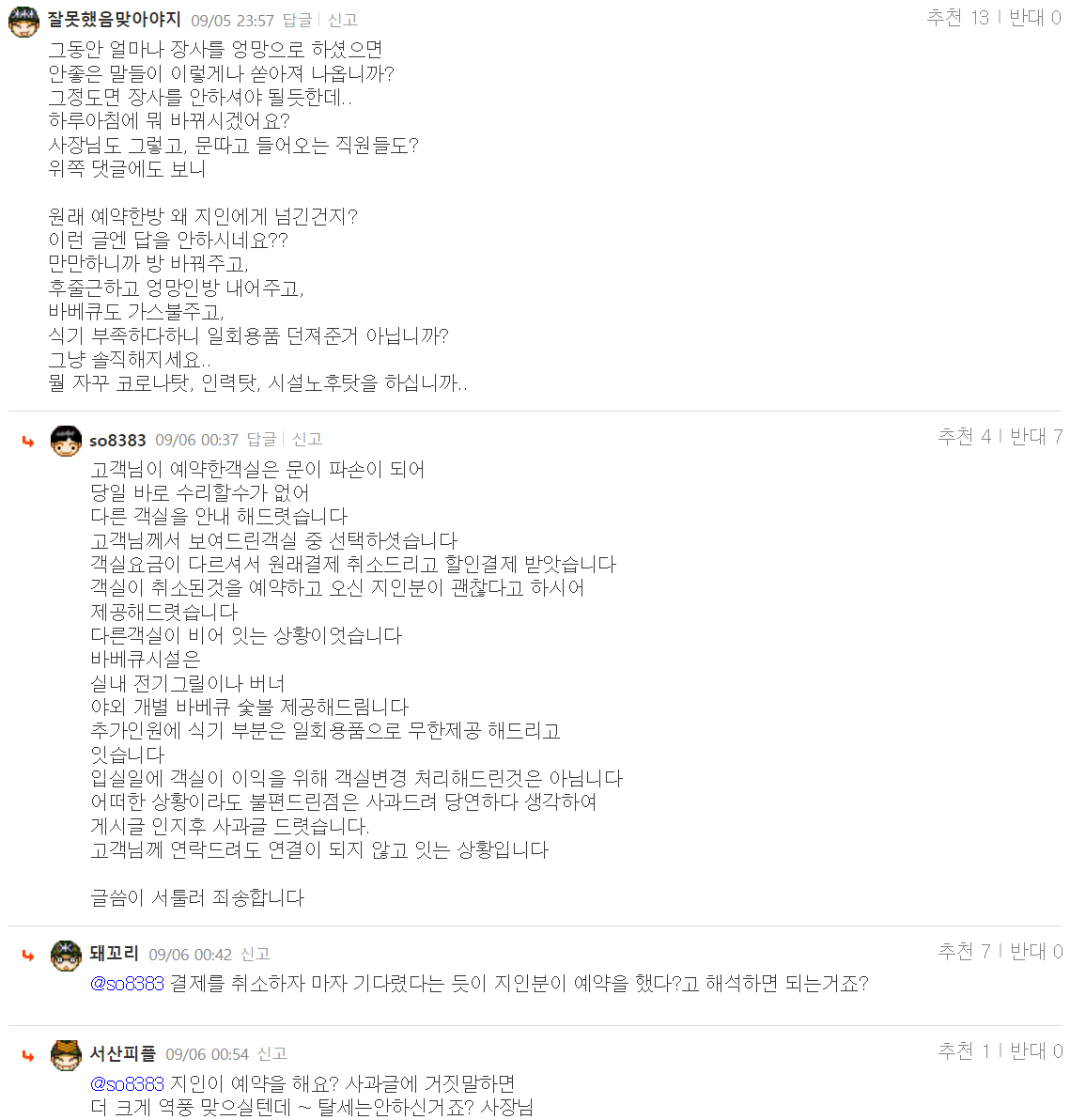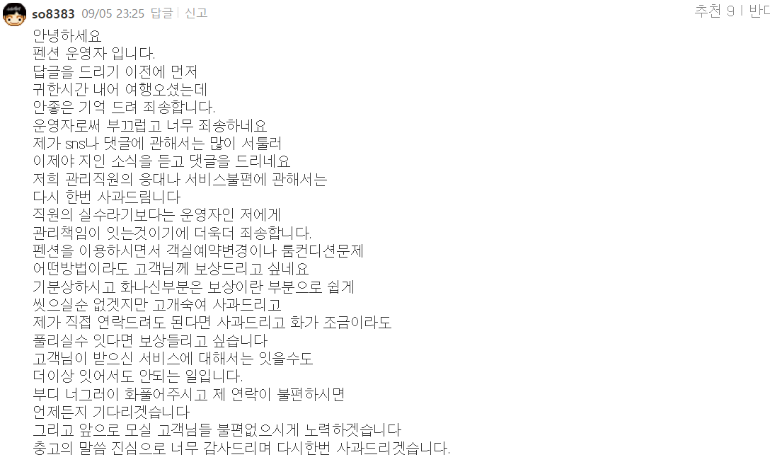 아무튼 펜션 사장이 등판해서 사과를 했습니다.