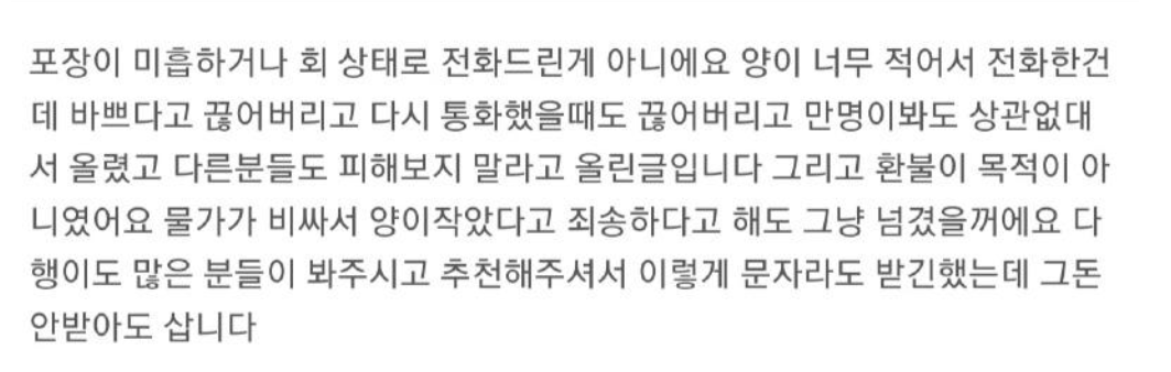 그런데... 글쓴이는 이제 환불 다 받았으니 글 삭제하고 식당에 피해를 주고 싶지 않다고 시전...