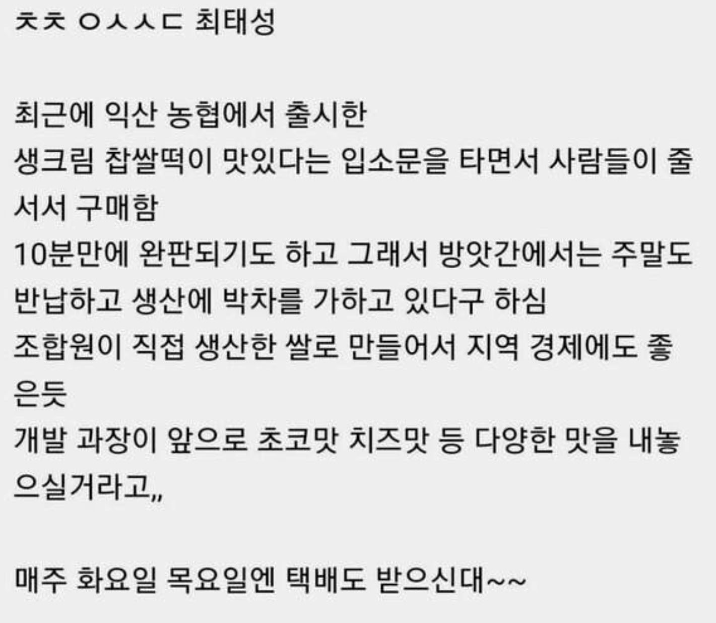 익산 농협에서 출시한 찹쌀떡이 엄청 맛있다는 입소문이 타고 있다고 합니다.