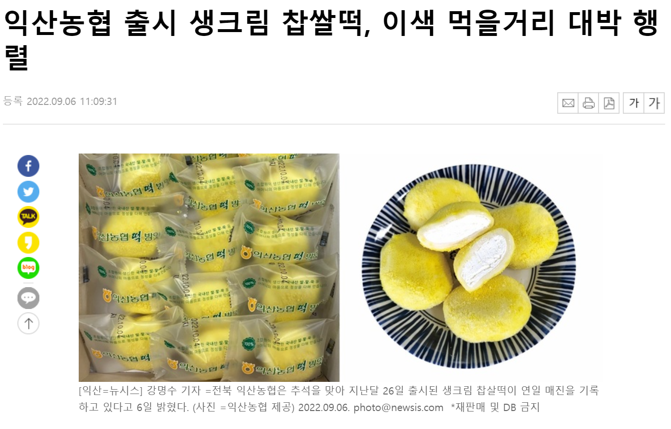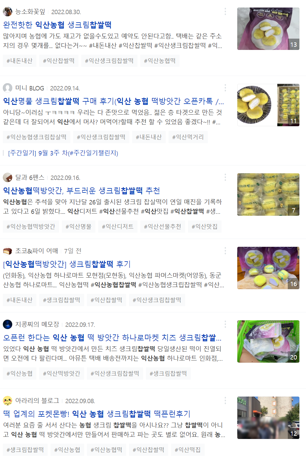 각종 블로그에도 익산 농협의 생크림 찹쌀떡이 큰 화재 입니다.