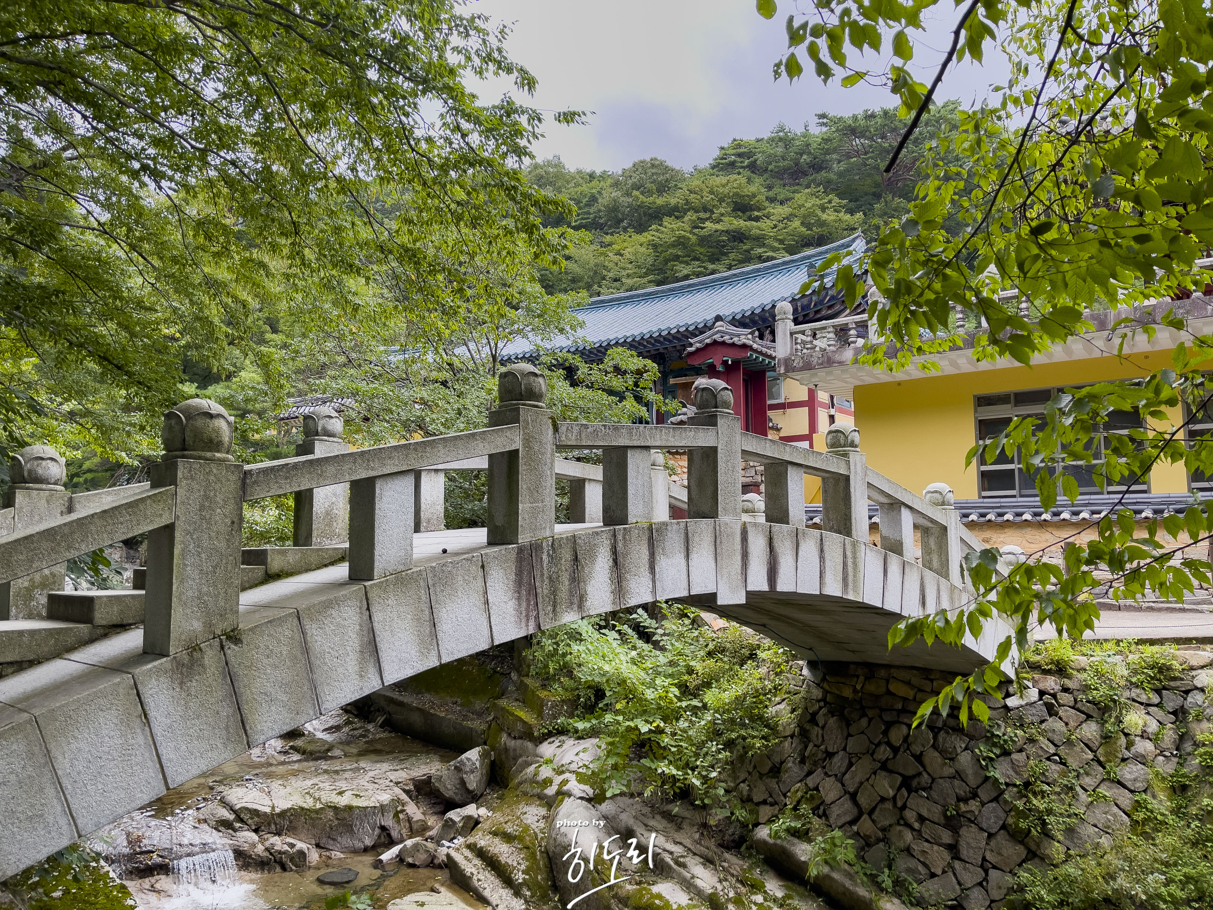 통도사에 세워져 있는 다리랑 비슷하게 생긴 다리를 지나