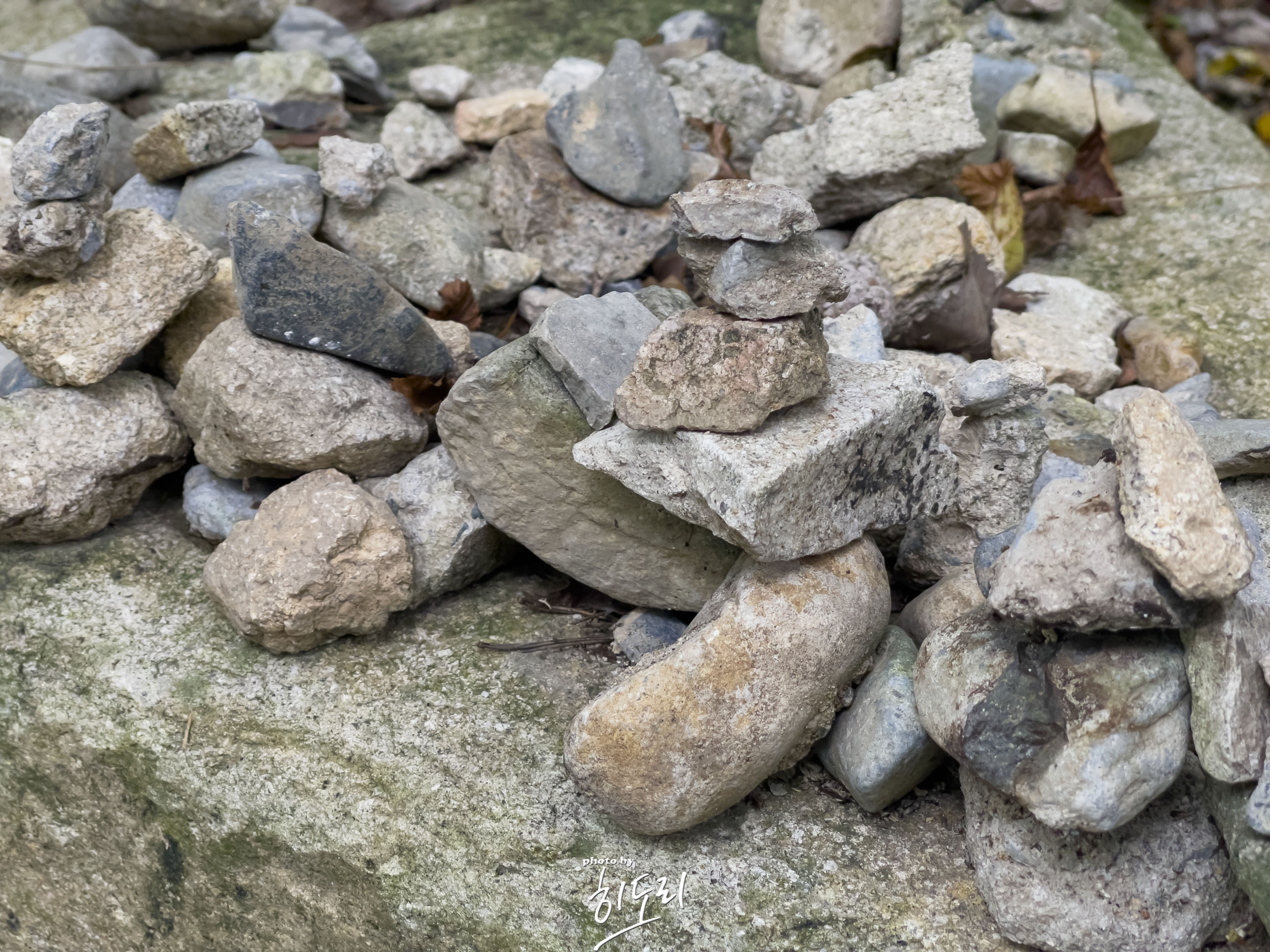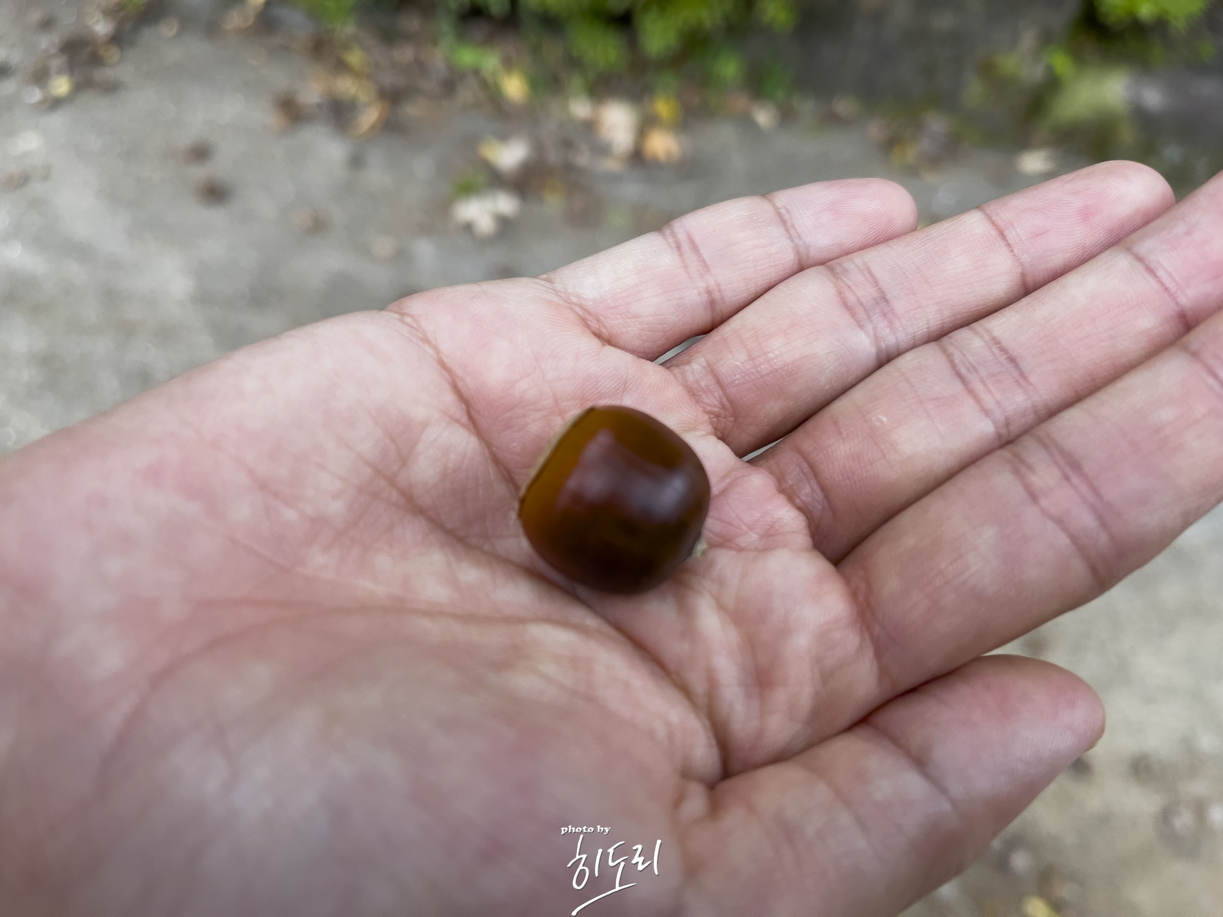 지나갈려니 절에 다녀가신분이 도토리를 주워 한군데 모아놓았네요.