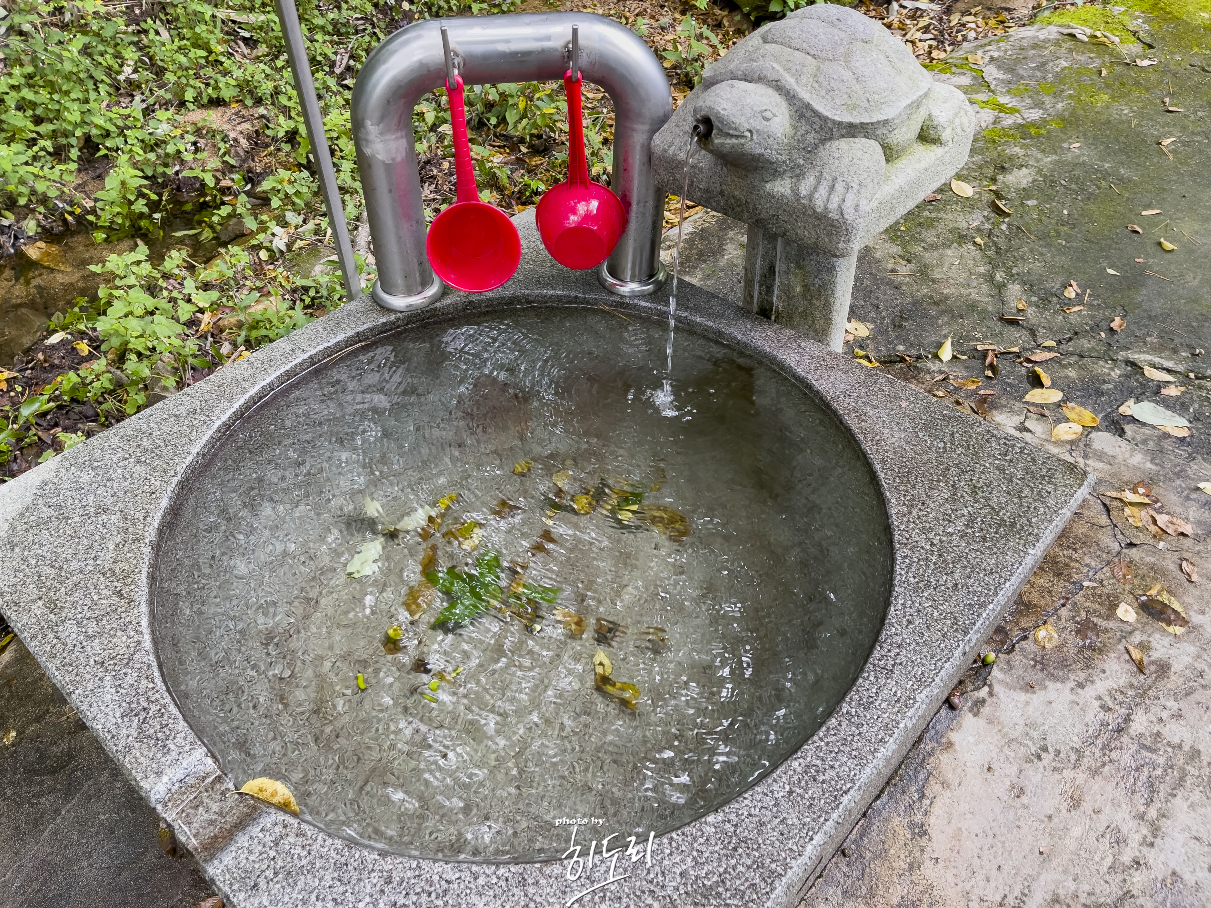 석남사 나무사잇길이 끝이 날때쯤 약수물을 드실수 있는 터가 나옵니다.
