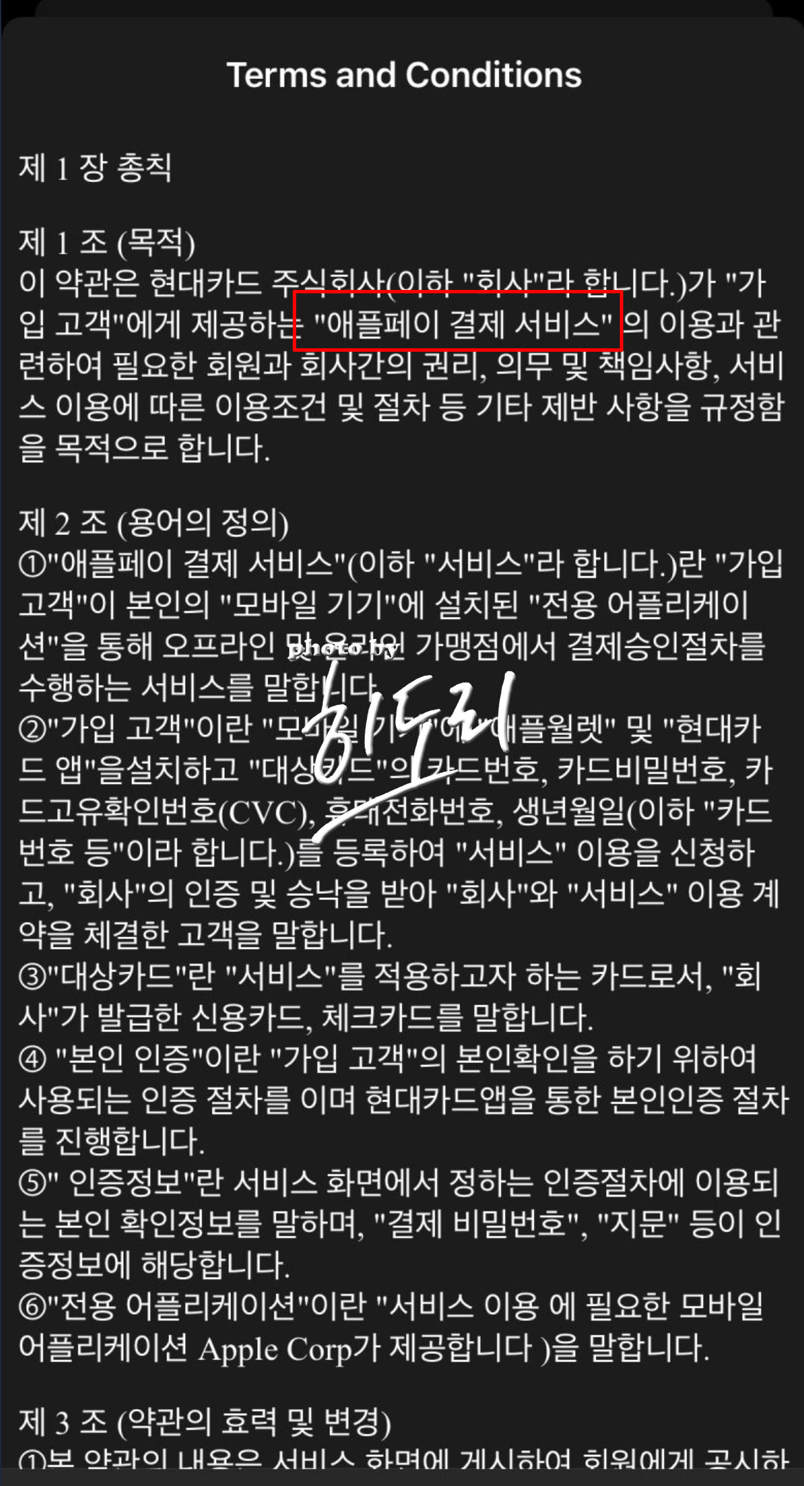 이유는 현대카드 약관에 애플페이 관련 이야기가 있습니다.