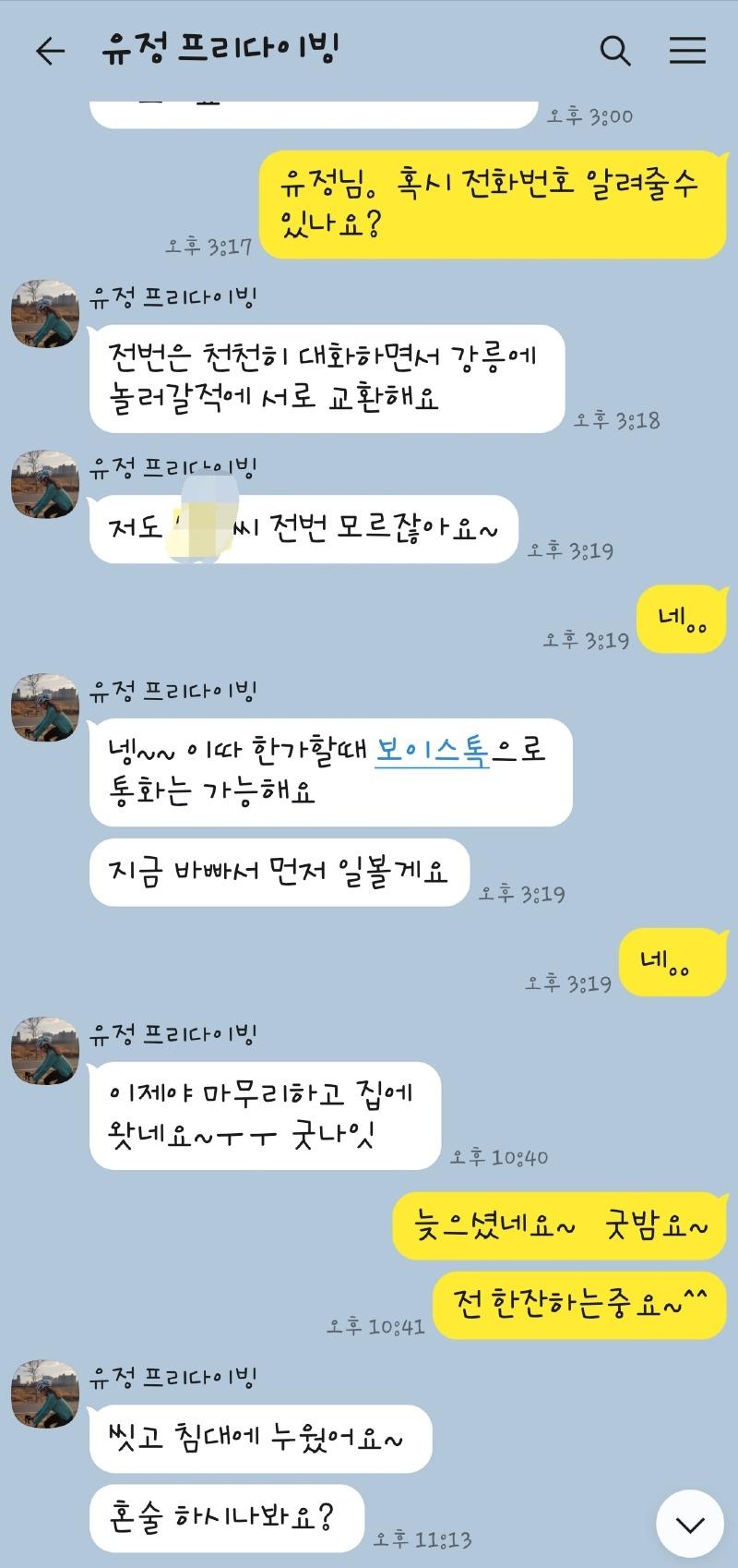 어제 카톡으로 몸캠 보이스피싱을 하는 유정씨!