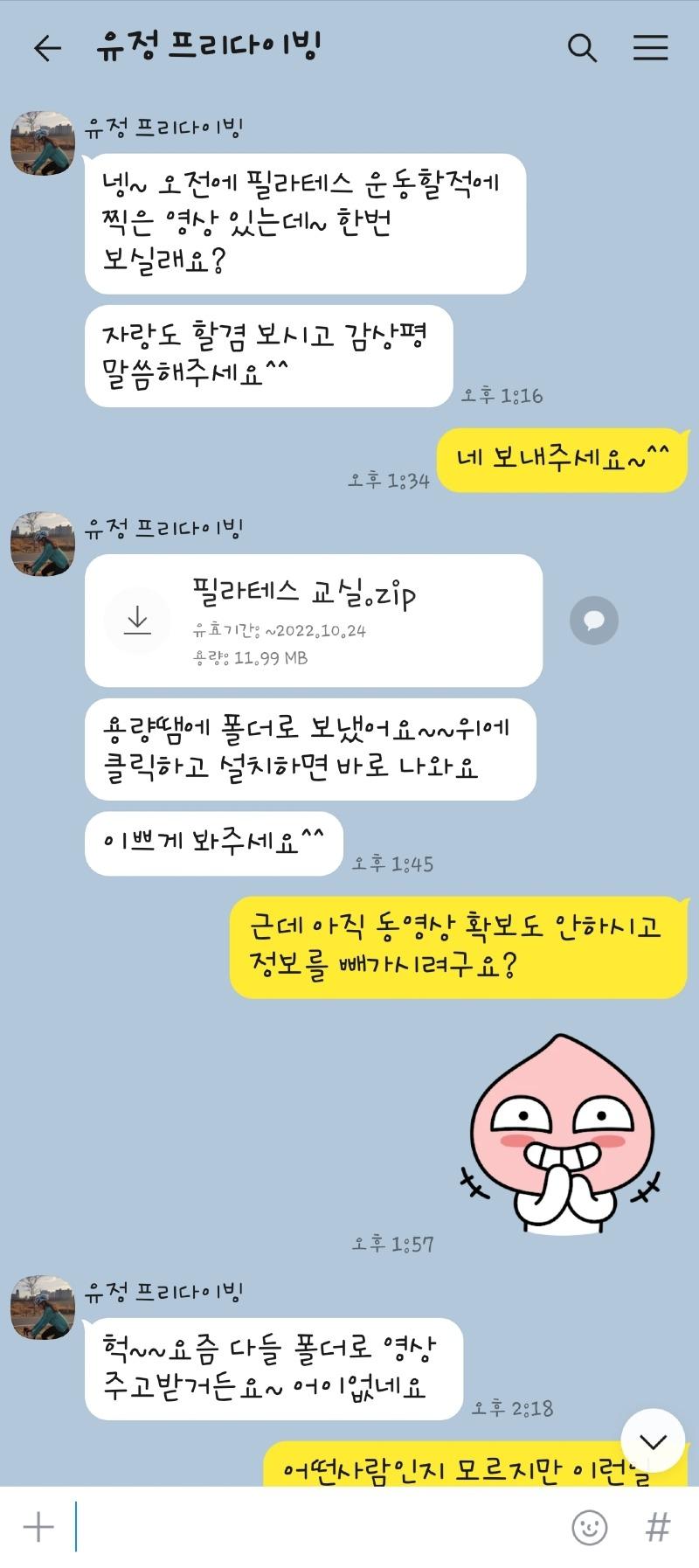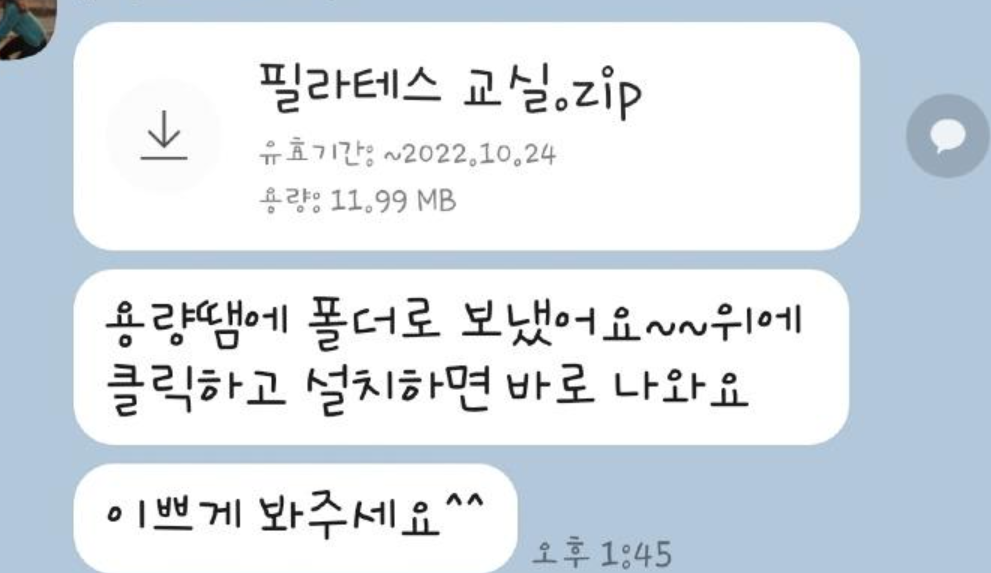 연락처 빼가기 위해 바이러스 프로그램을 보내주는 유정씨~