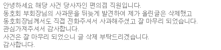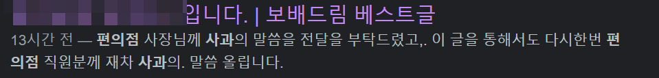 해당 글을 썼던 편의점 직원이 사과를 받았고! 잘 마무리가 되었다고 생각해서 사과문은 삭제가 된것 같습니다.