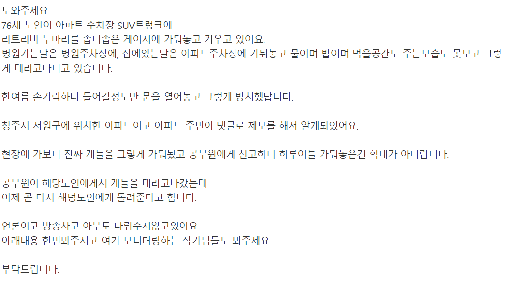 정말 화가나는 동물학대 사건이 있습니다.