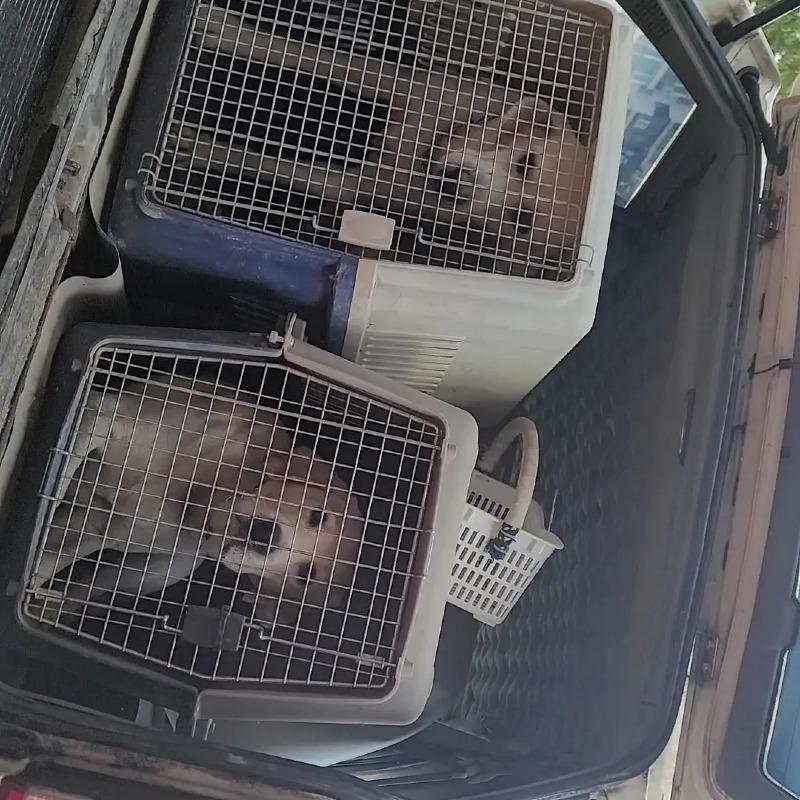 아파트에서 개를 못키우게 했는지 리트리버 두마리를 구형 무쏘 트렁크에 가둬두고 키우는 견주입니다.