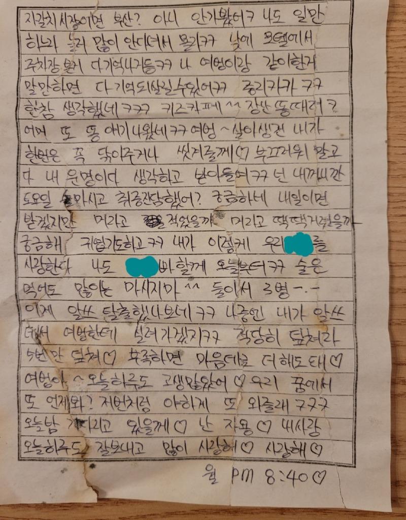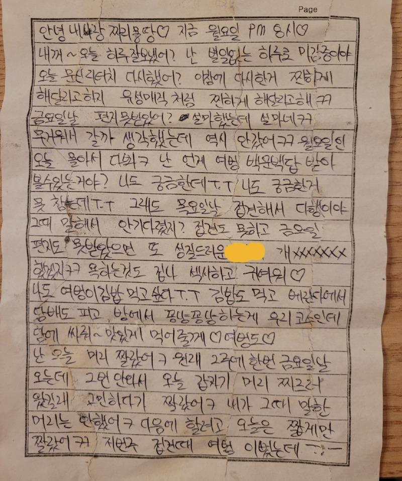 그 쓰레기 더미에서 발견한 무수한 증거중 지금의 외도남과 관련된 옥중편지 하나를 공개 했습니다.
