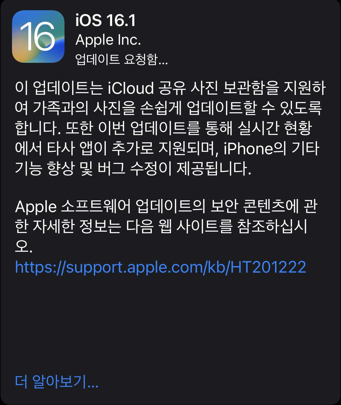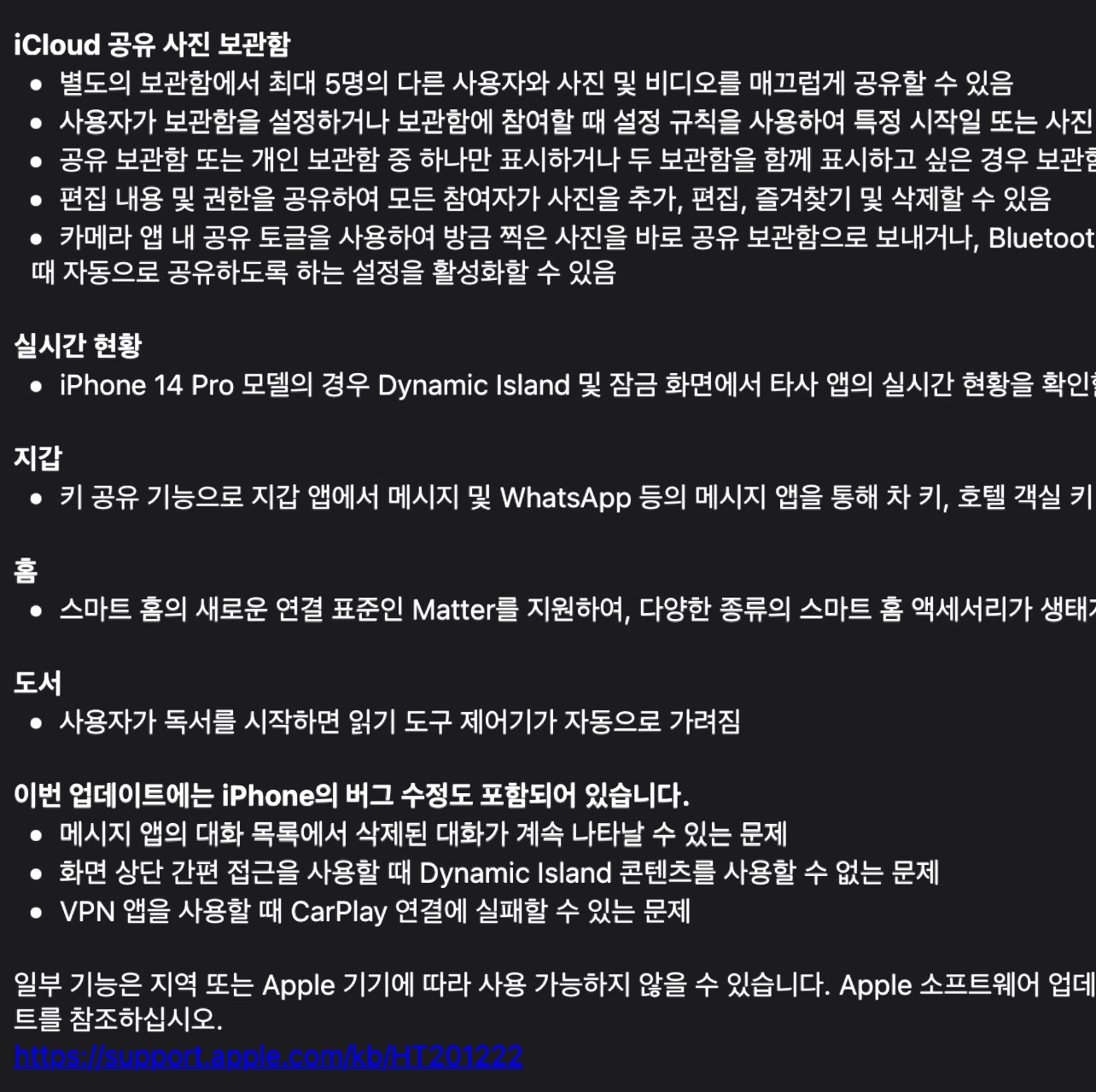 또 iOS 16.1에는 메시지 앱의 대화 목록에 삭제된 대화가 계속 보이는 문제를 비롯한 여러 버그 수정과 함께 다양한 기능들이 추가 되었죠.