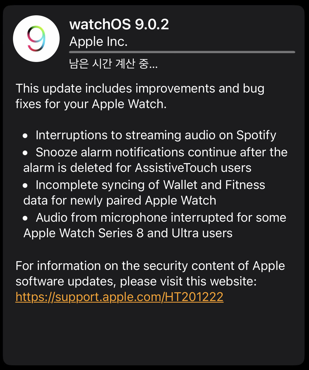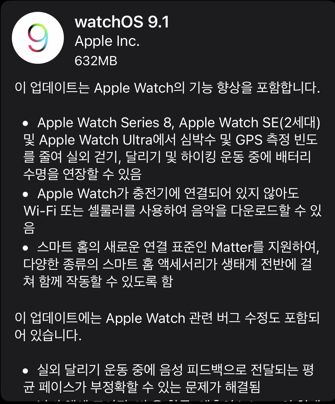 구입한지 얼마나 되었다고 watch os 9.0.2 업데이트가 되더니~