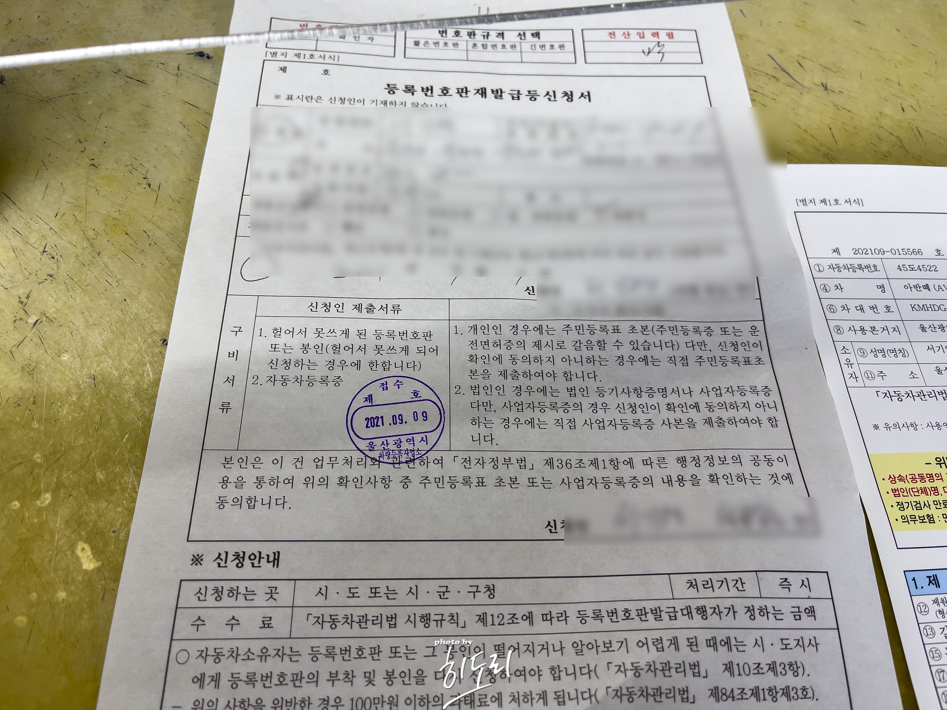 번호판 제작해주는곳에 가서 새로운 번호판 발급 받은 뒤~