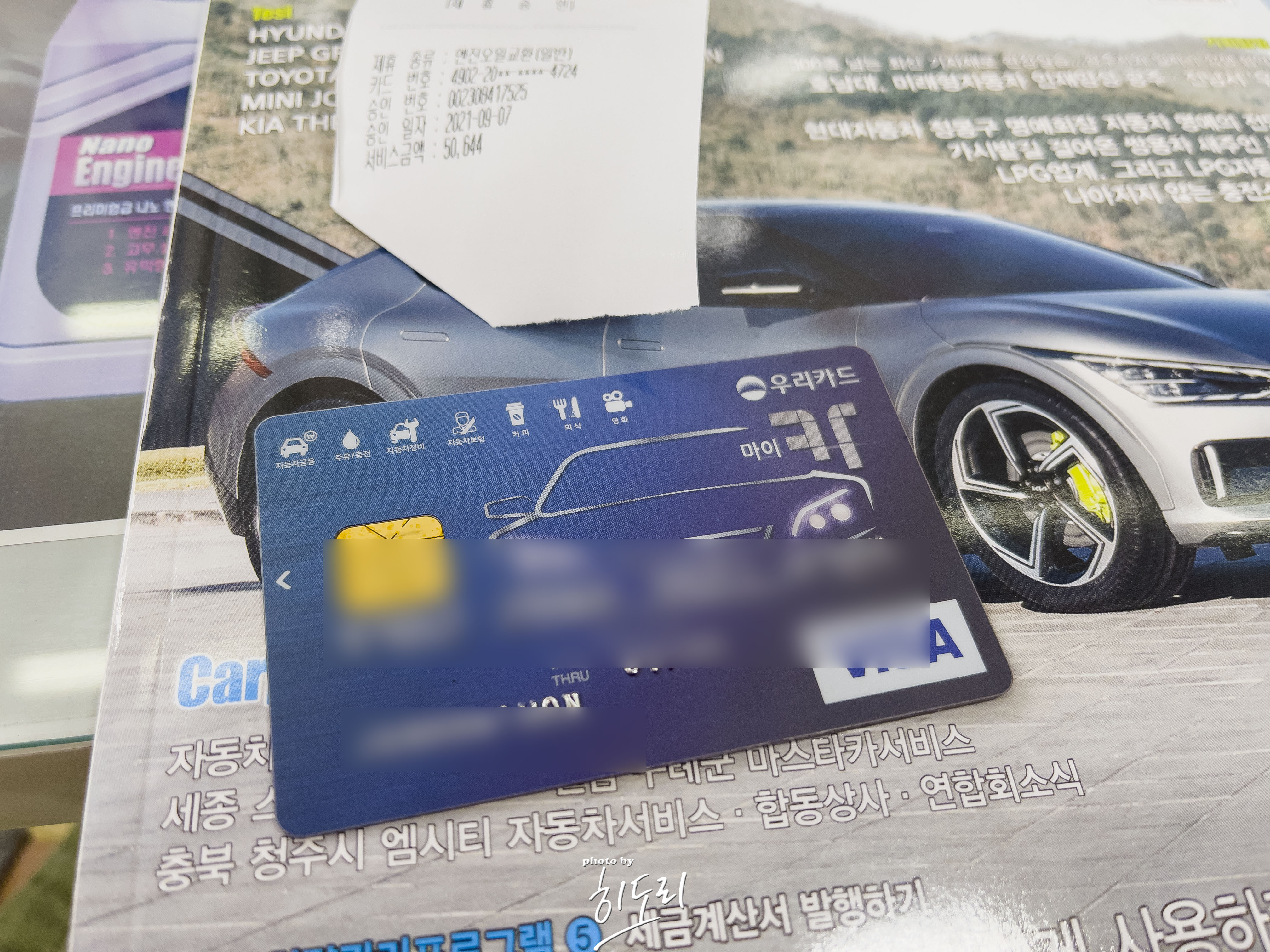 우리카드 마이카 신용카드가 있는데 1년에 1회 무상 엔진오일 교체가 가능하다고 해서~