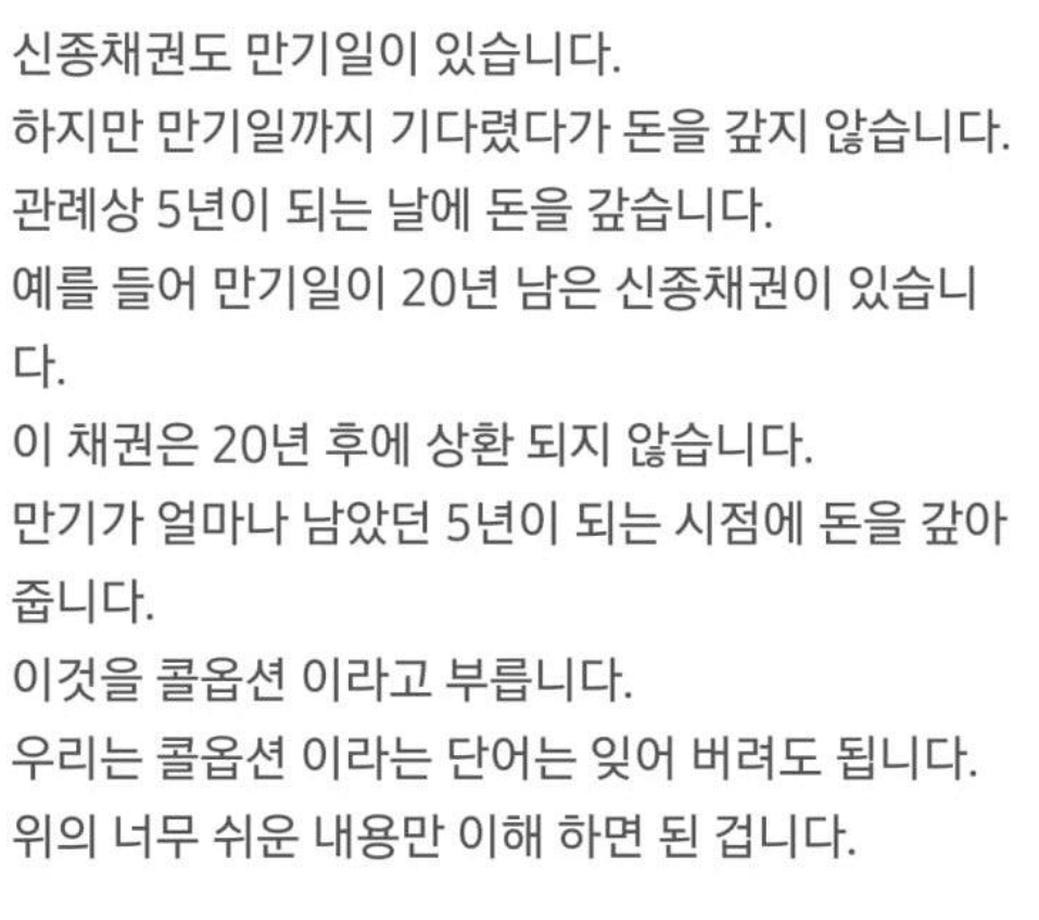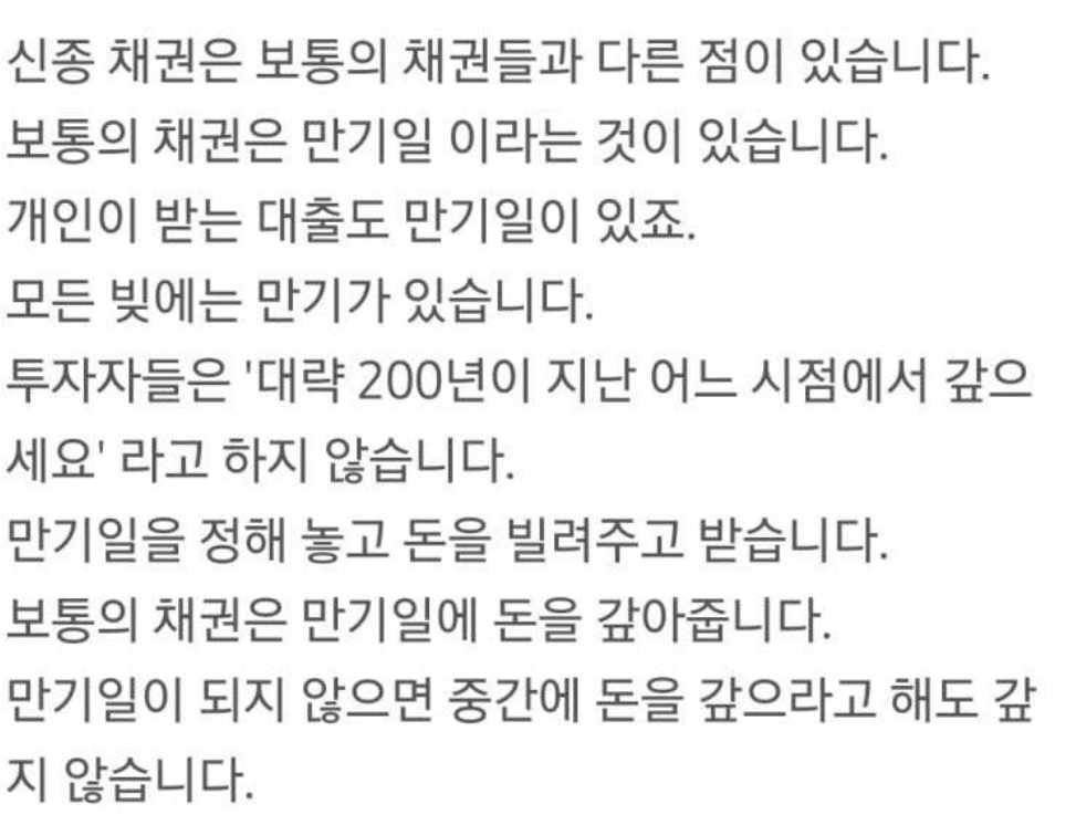 3. 신종채권은 일반 채권들과 틀립니다. 일반 채권은 만기일이라는게 있습니다.