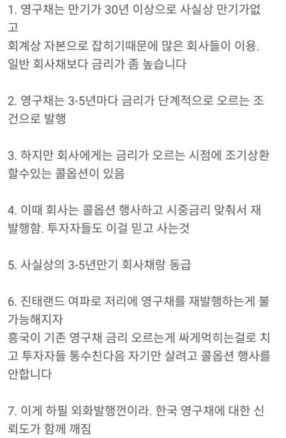 7. 이게 하필 외화발행이라. 한국 영구채에 대한 신 뢰도가 함께 깨짐