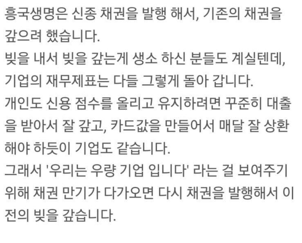 2. 흥국생명은 신종채권을 발행해서 기존의 채권을 갚을려고 했습니다.