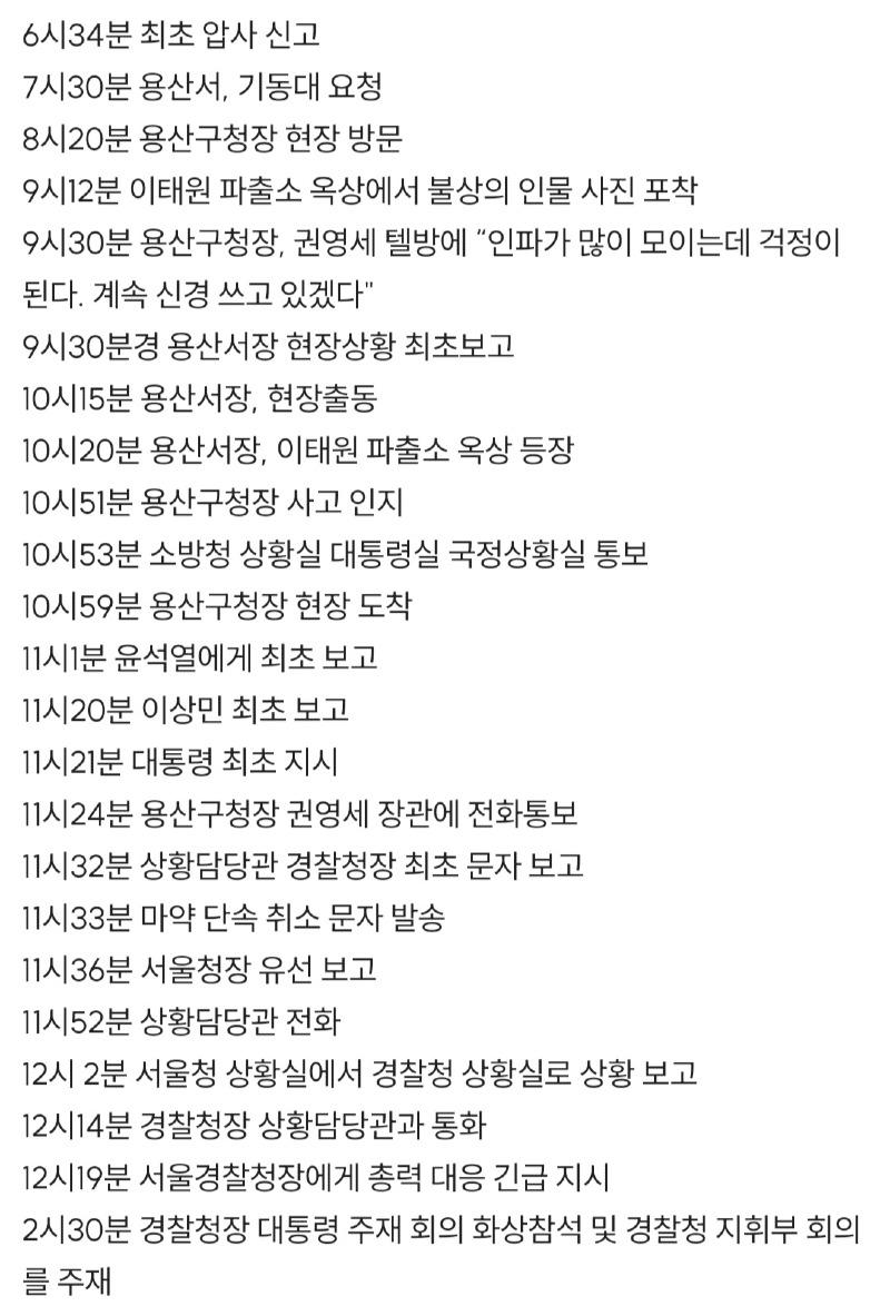 현재까지의 이태원 참사 타임라인을 간략하게 적혀져 있습니다.