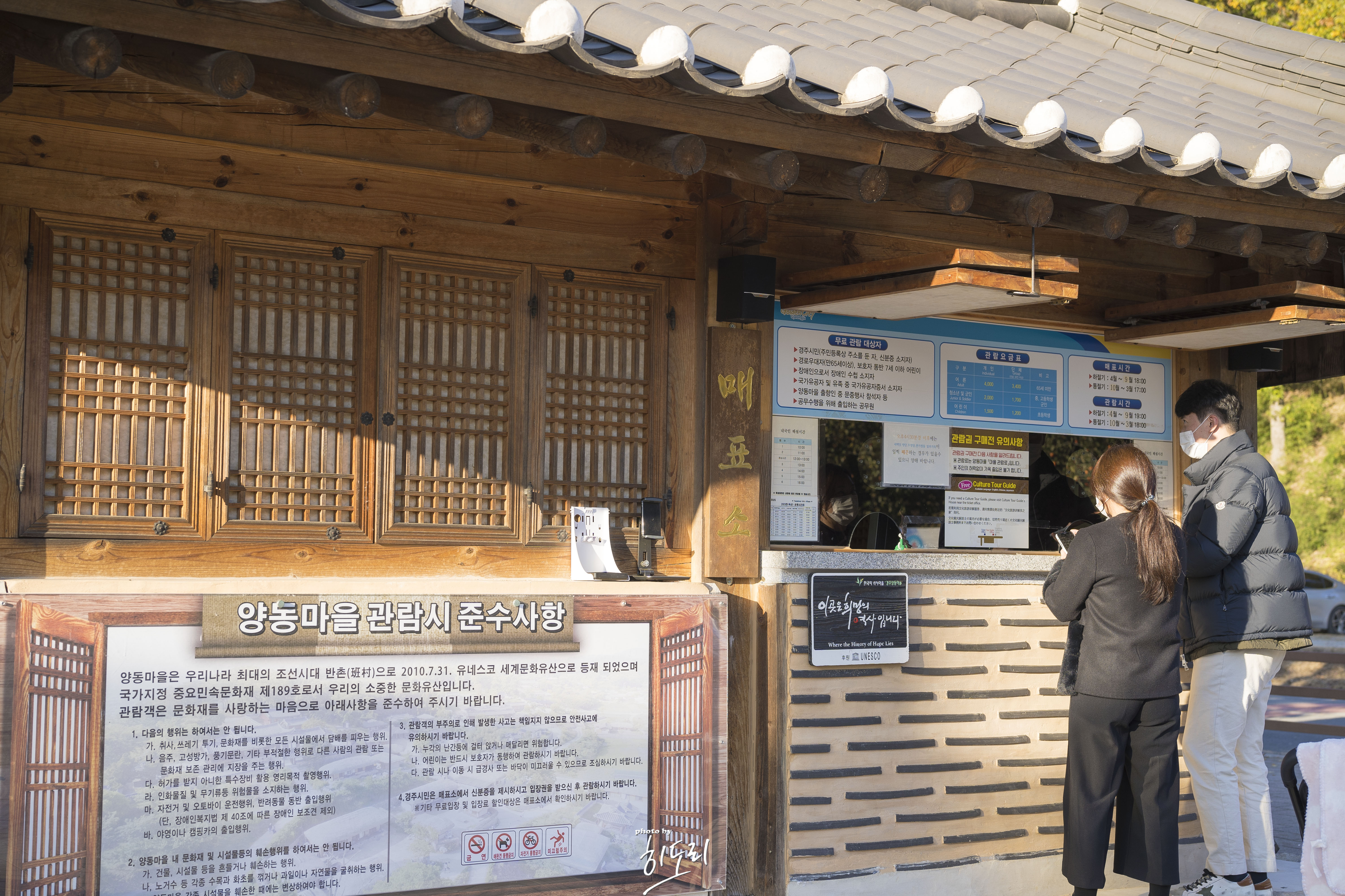 양동마을을 들어가기 위해선 입장료가 필요합니다.