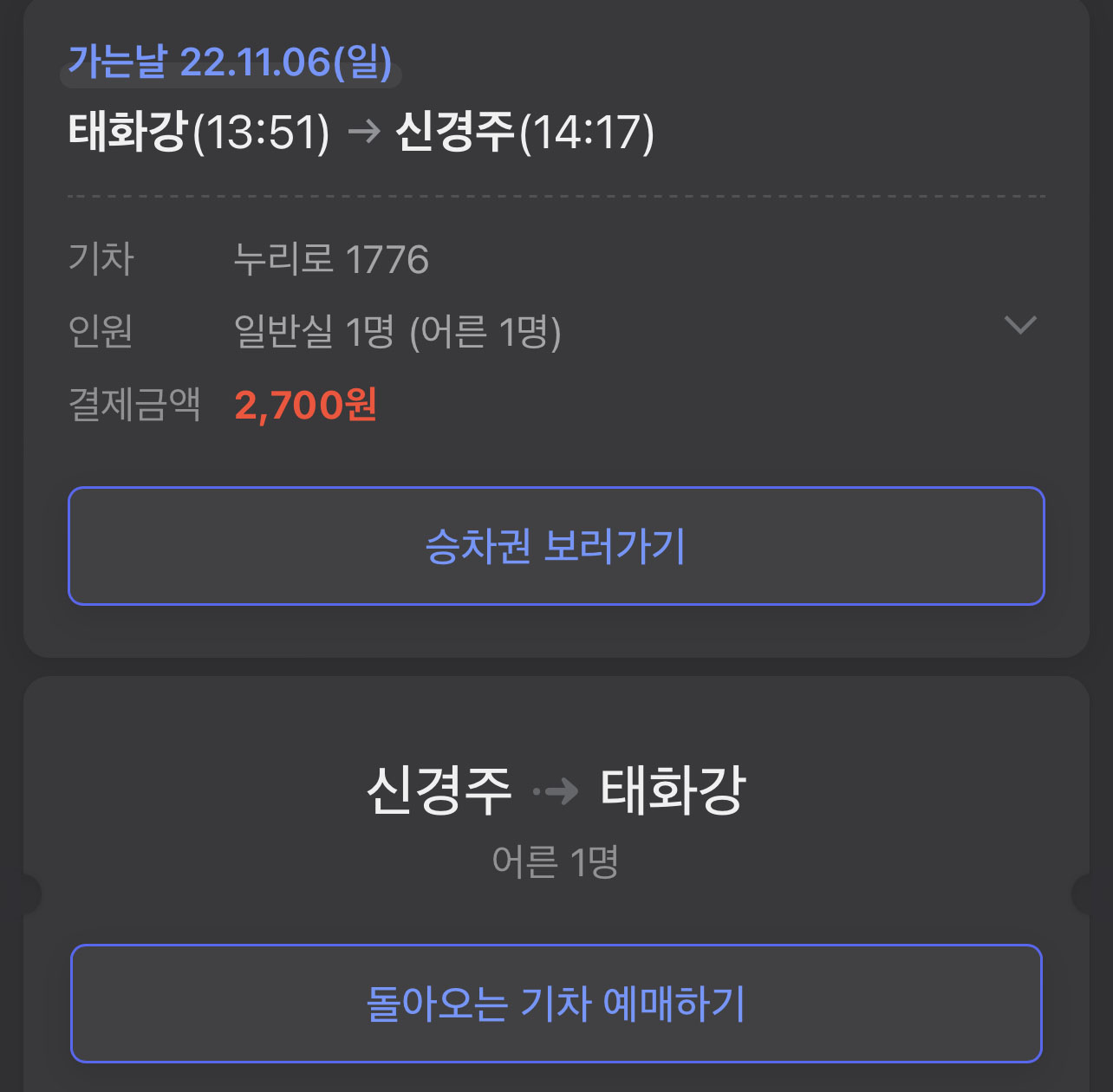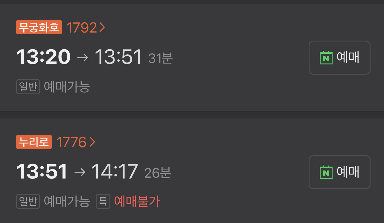 요즘 기차는 네이버로 손쉽게 예매가 되네요.