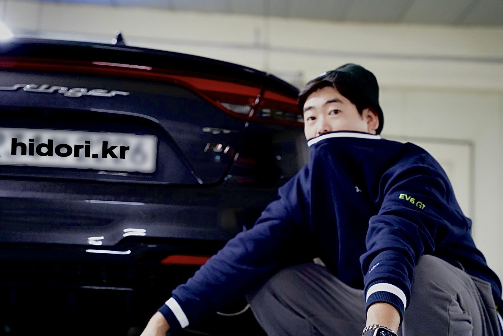 얼굴이 아닌 EV6 GT에 초점이 맞았네요.